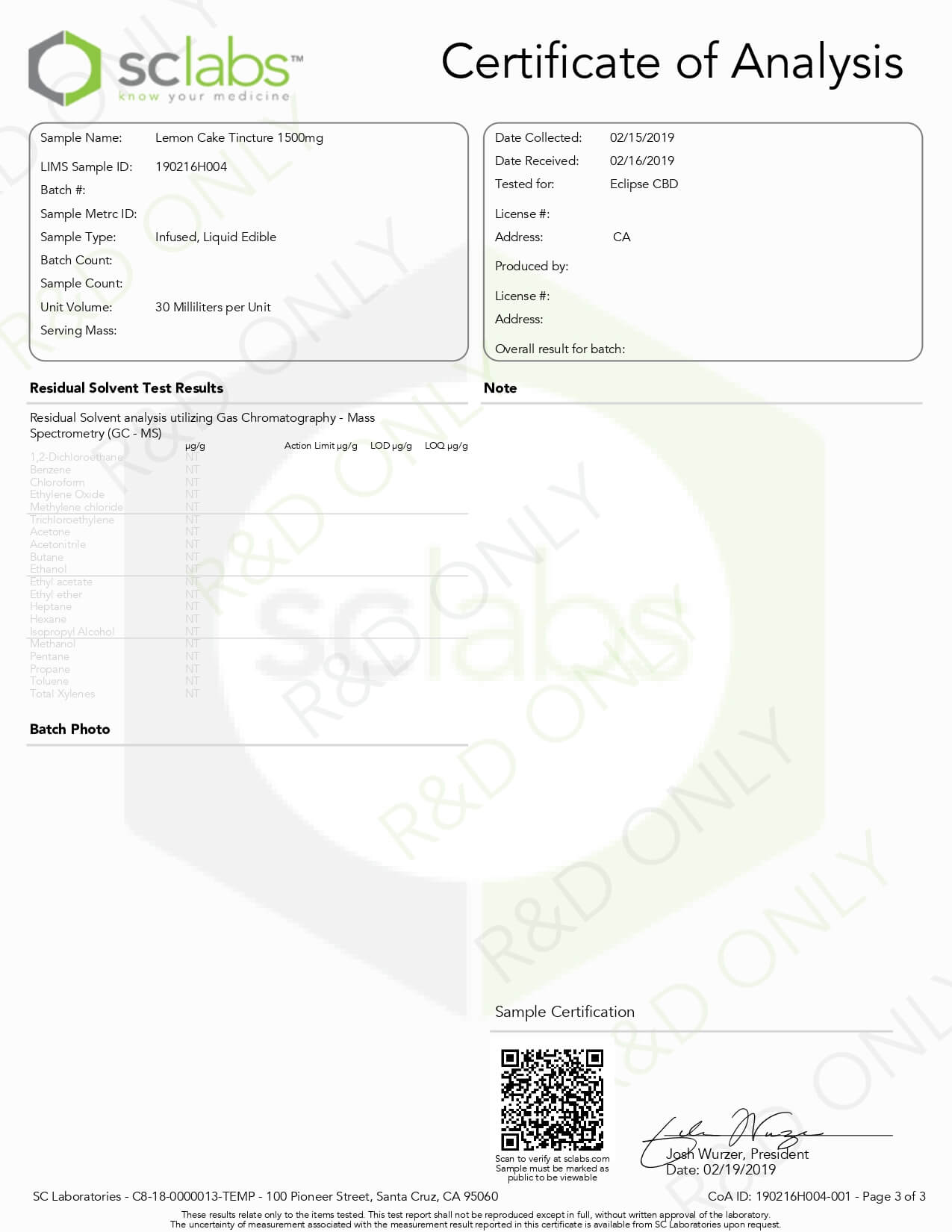 Eclipse CBD MCT Tincture Lemon Cake Lab Report important details about vaping products.