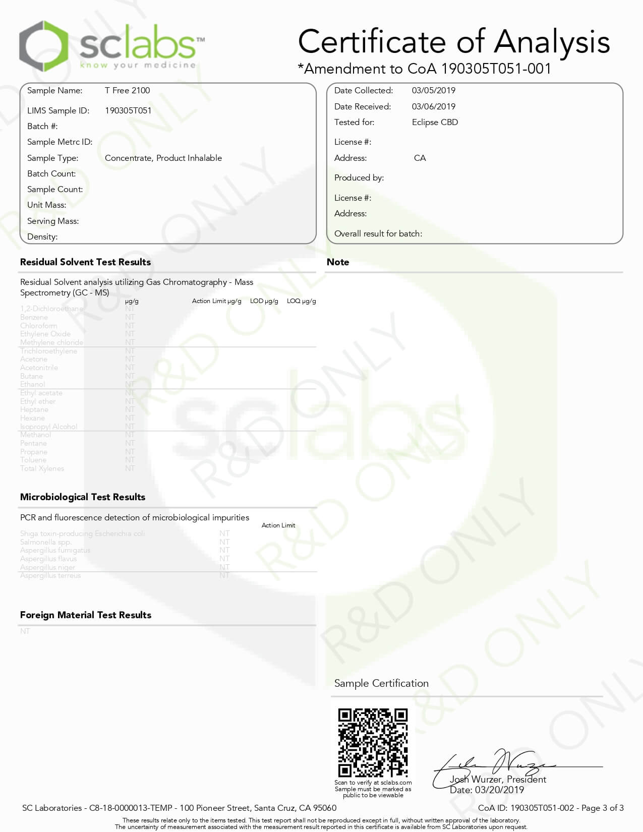 Eclipse CBD Tincture Full Spectrum Peanut Butter Lab Report