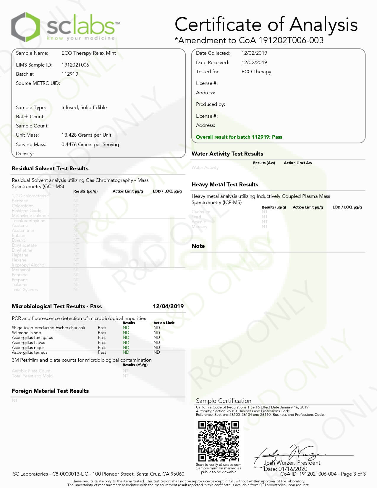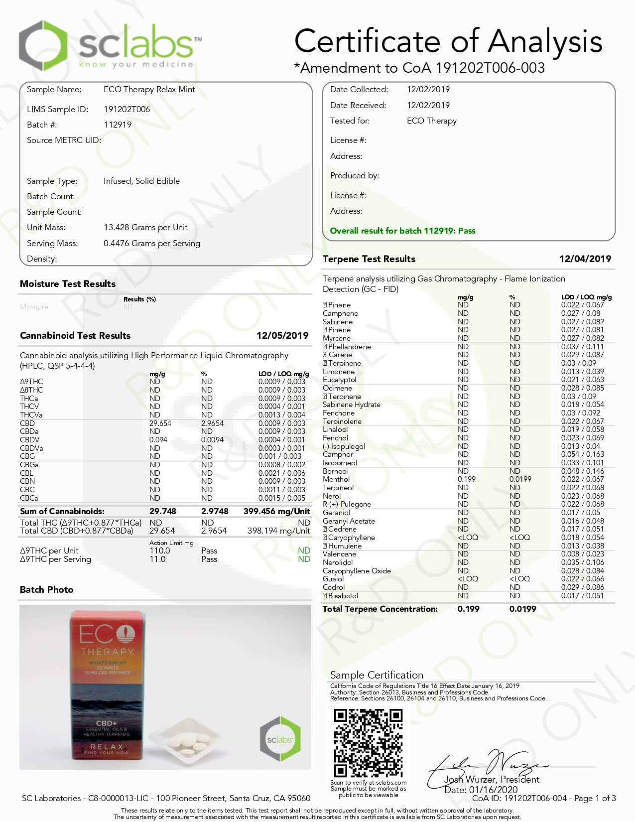 ECO Therapy CBD Edible Relax Mints Lab Report