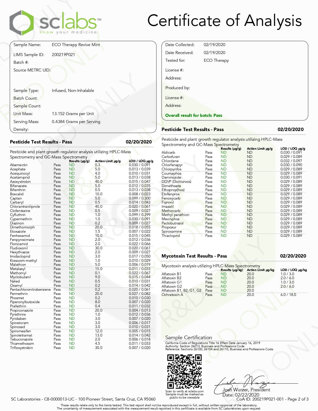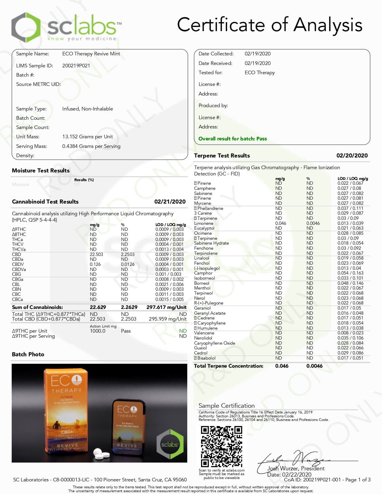 ECO Therapy CBD Edible Revive Mints Lab Report important details about vaping products.