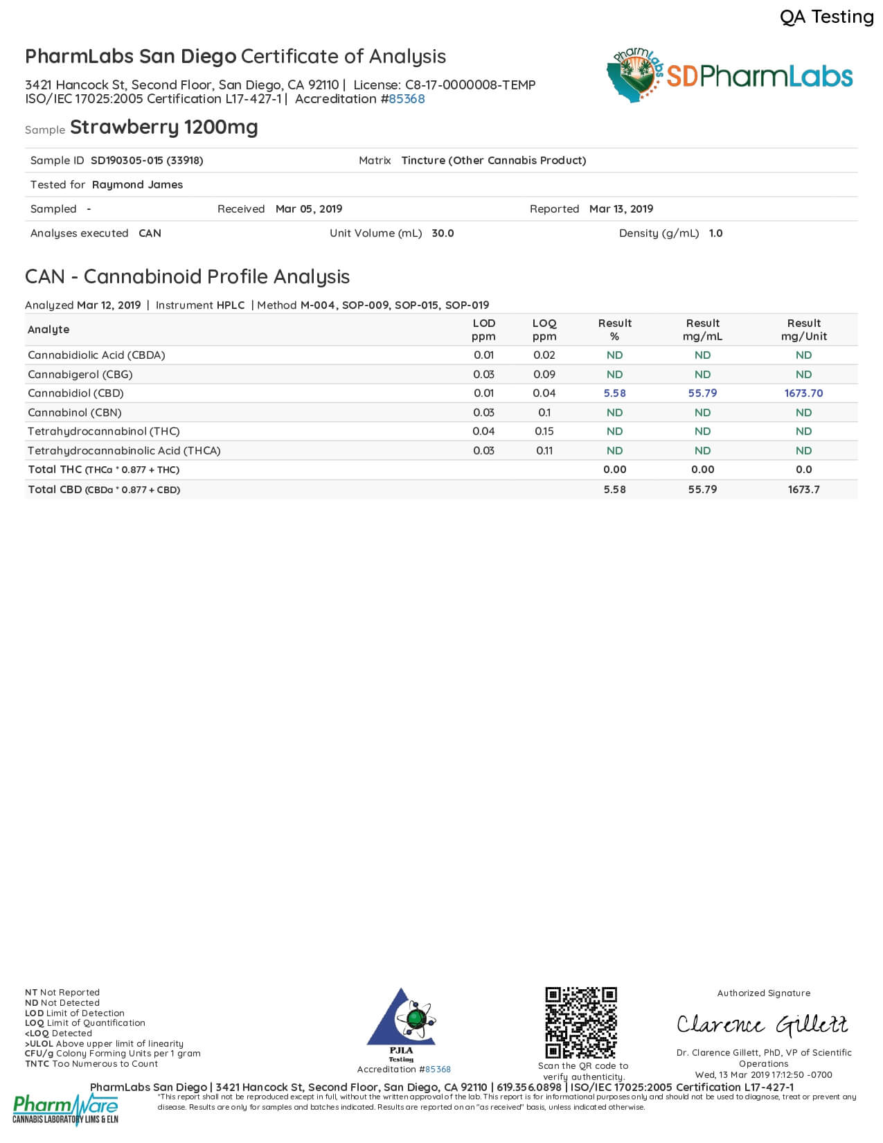 El Gallo CBD Tincture Natural Strawberry 1200mg Lab Report