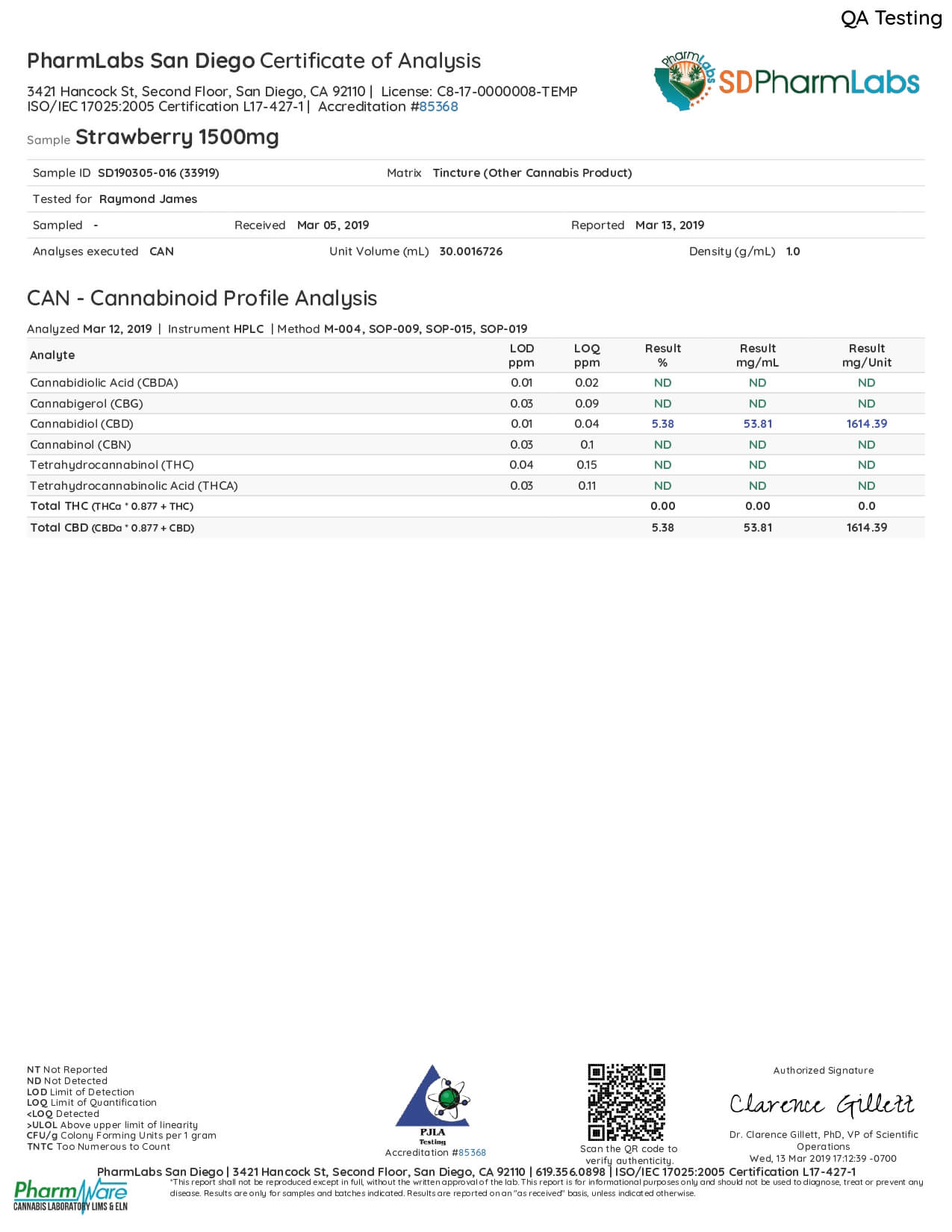 El Gallo CBD Tincture Natural Strawberry 1500mg Lab Report