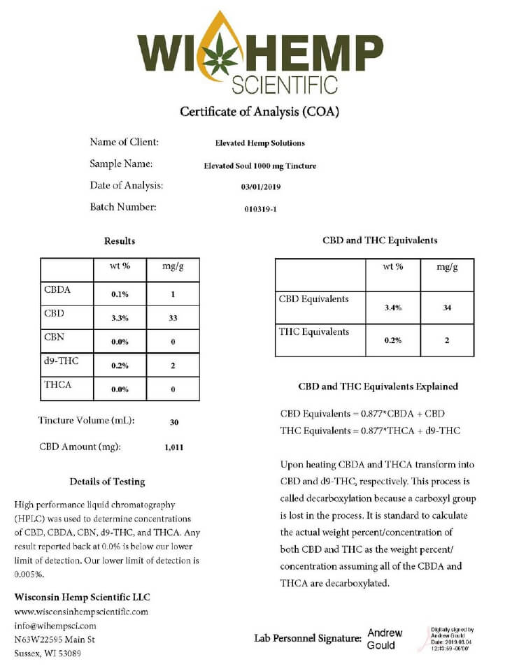 Elevated Soul CBD Tincture Full Spectrum MCT Oil 1000mg Lab Report