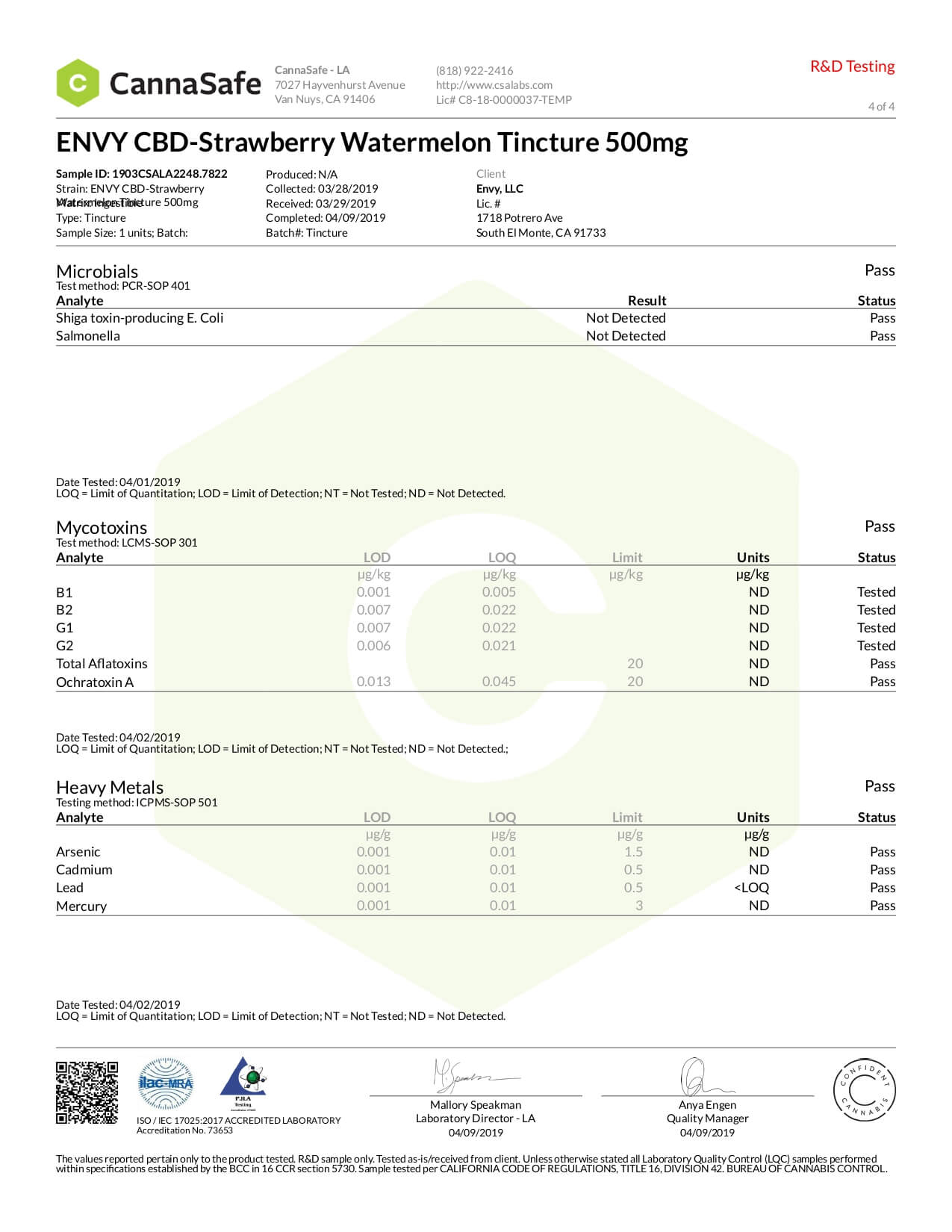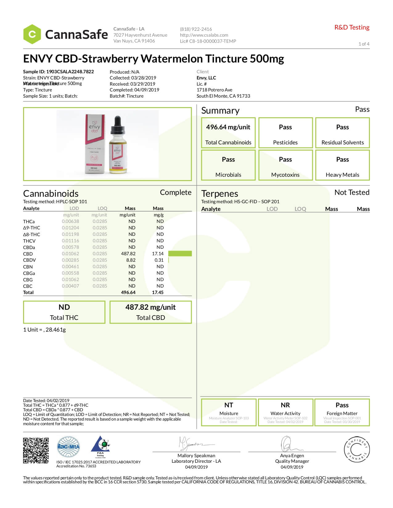 ENVY CBD Tincture Strawberry Watermelon 500mg Lab Report