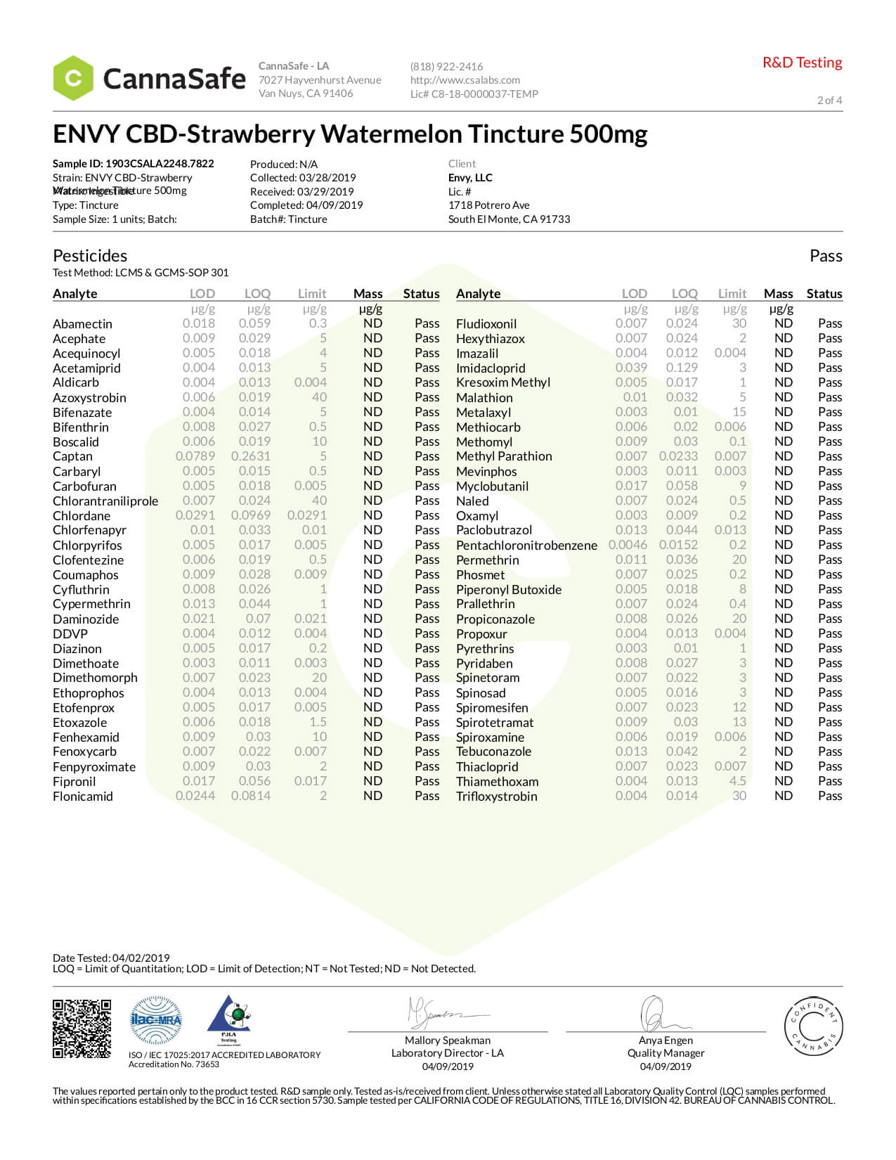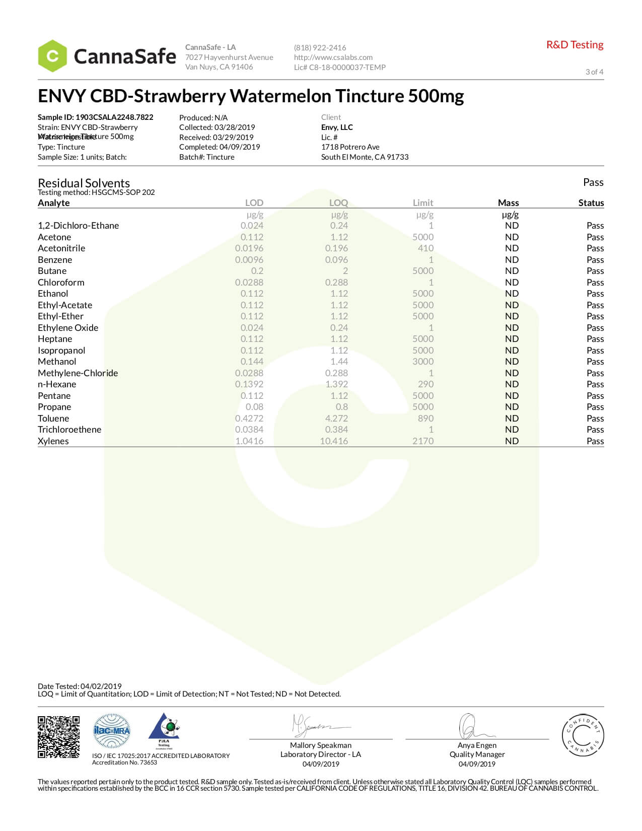 ENVY CBD Tincture Strawberry Watermelon Lab Report important details about vaping products.