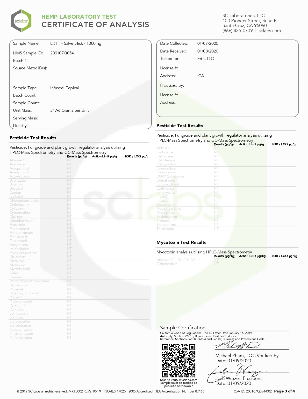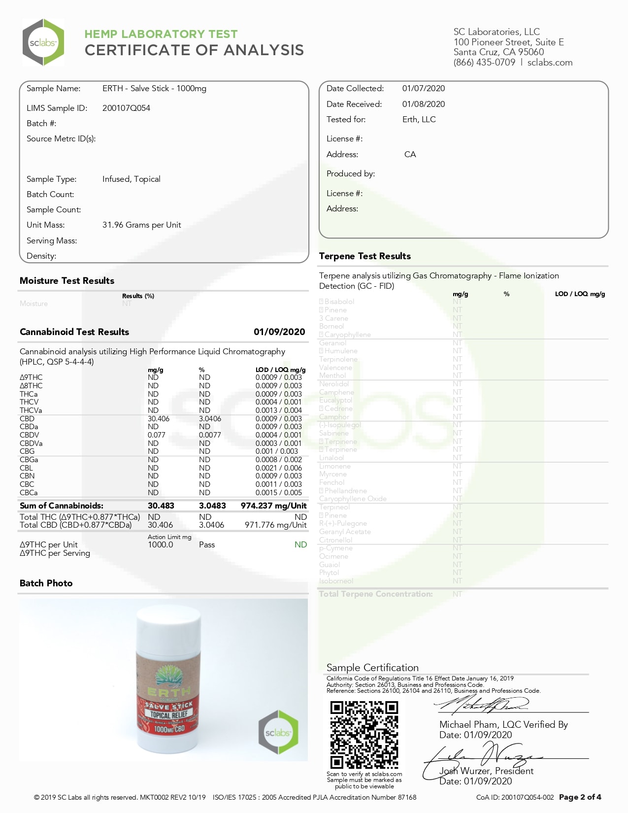 ERTH Hemp CBD Topical Pain Stick Relief Lab Report important details about vaping products.