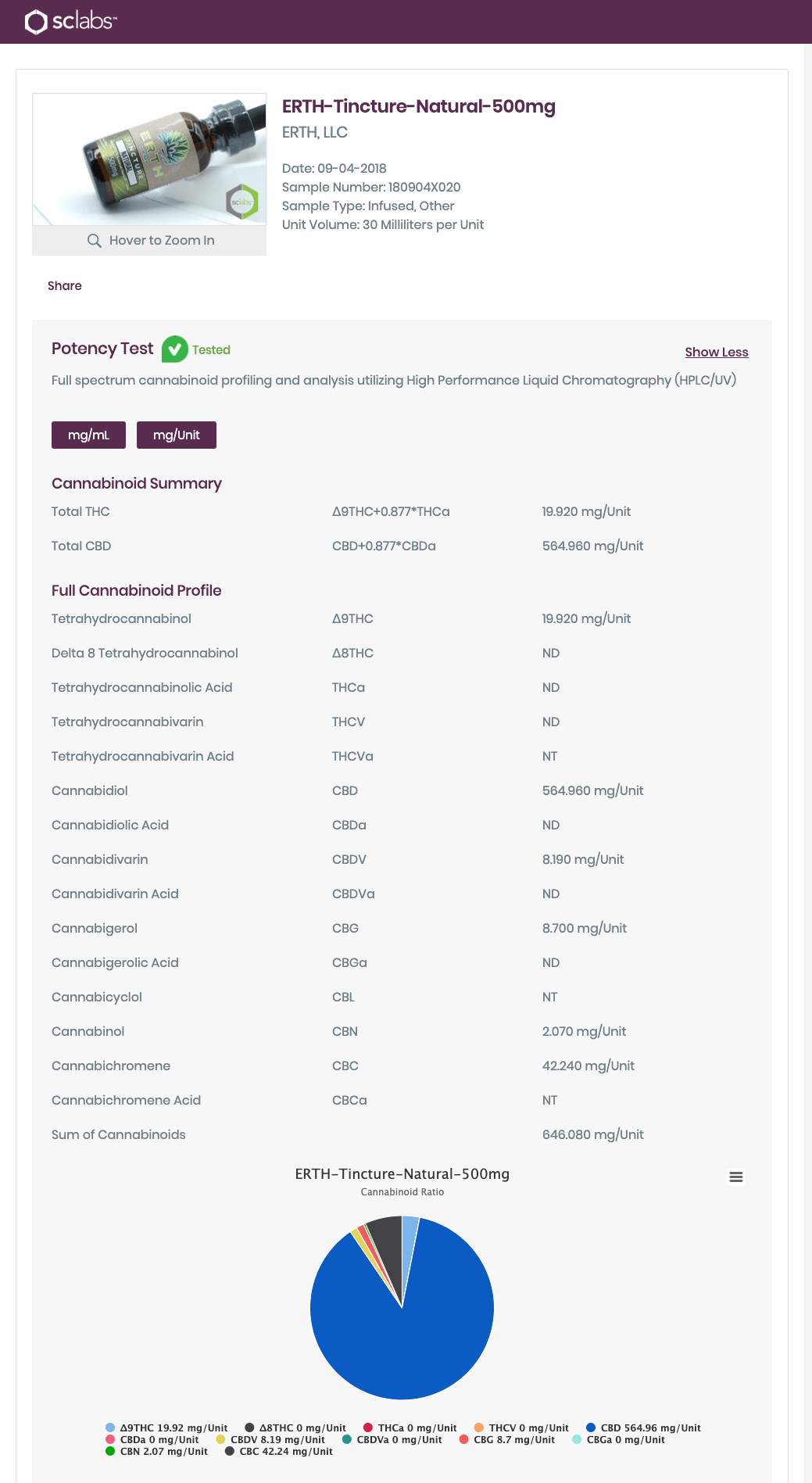 ERTH Hemp Pure CBD Oil Unflavored Tincture Lab Report