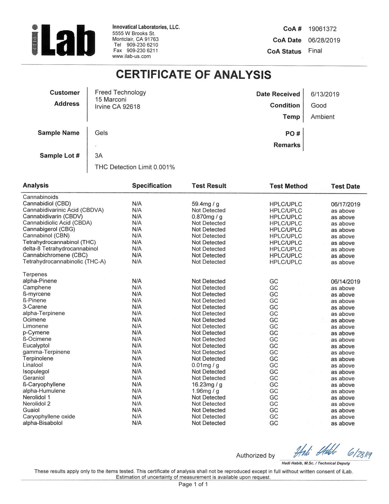 Freed CBD Soft Gel Caps Lab Report important details about vaping products.