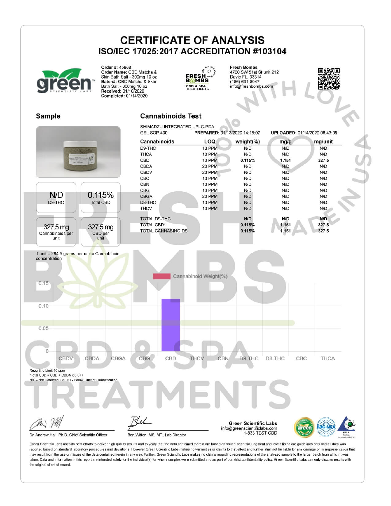 Fresh Bombs CBD Bath Matcha Skin Scrub Lab Report