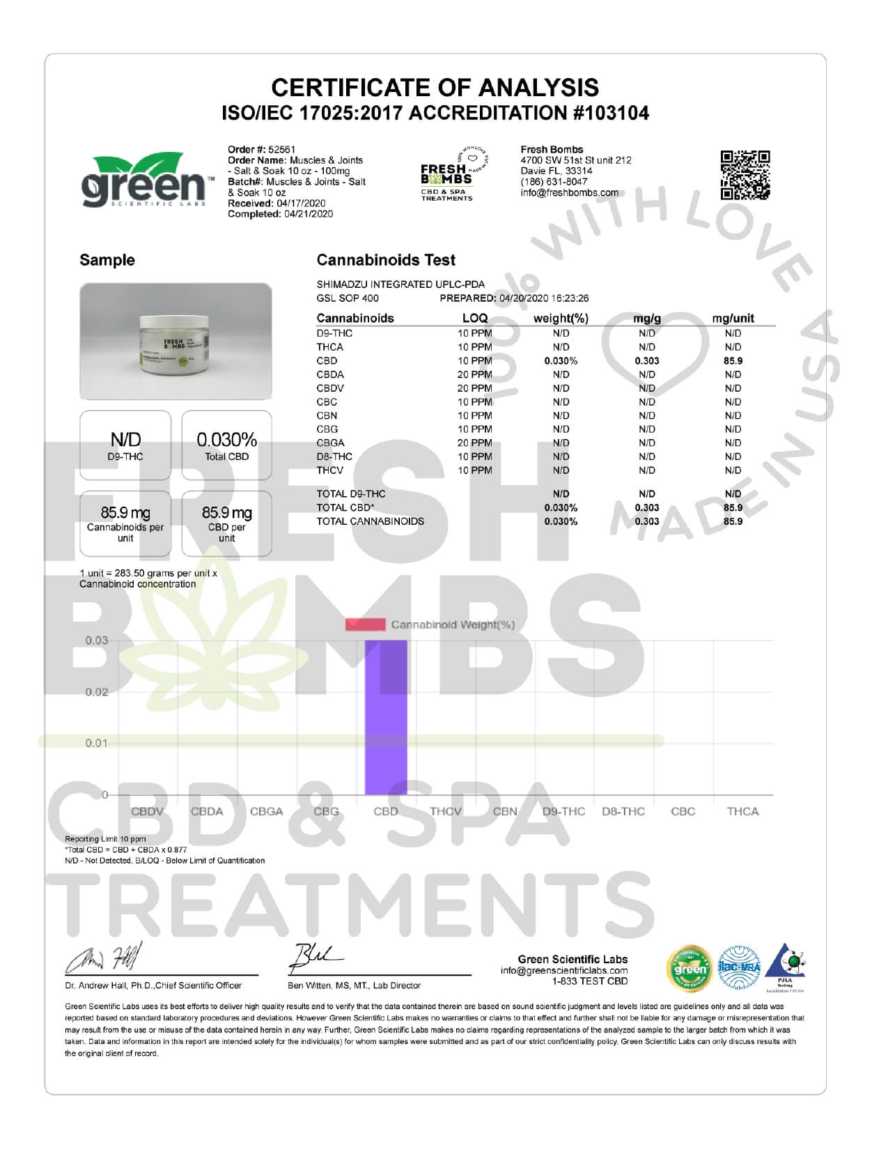 Fresh Bombs CBD Bath Muscle and Joint Bath Soak Lab Report
