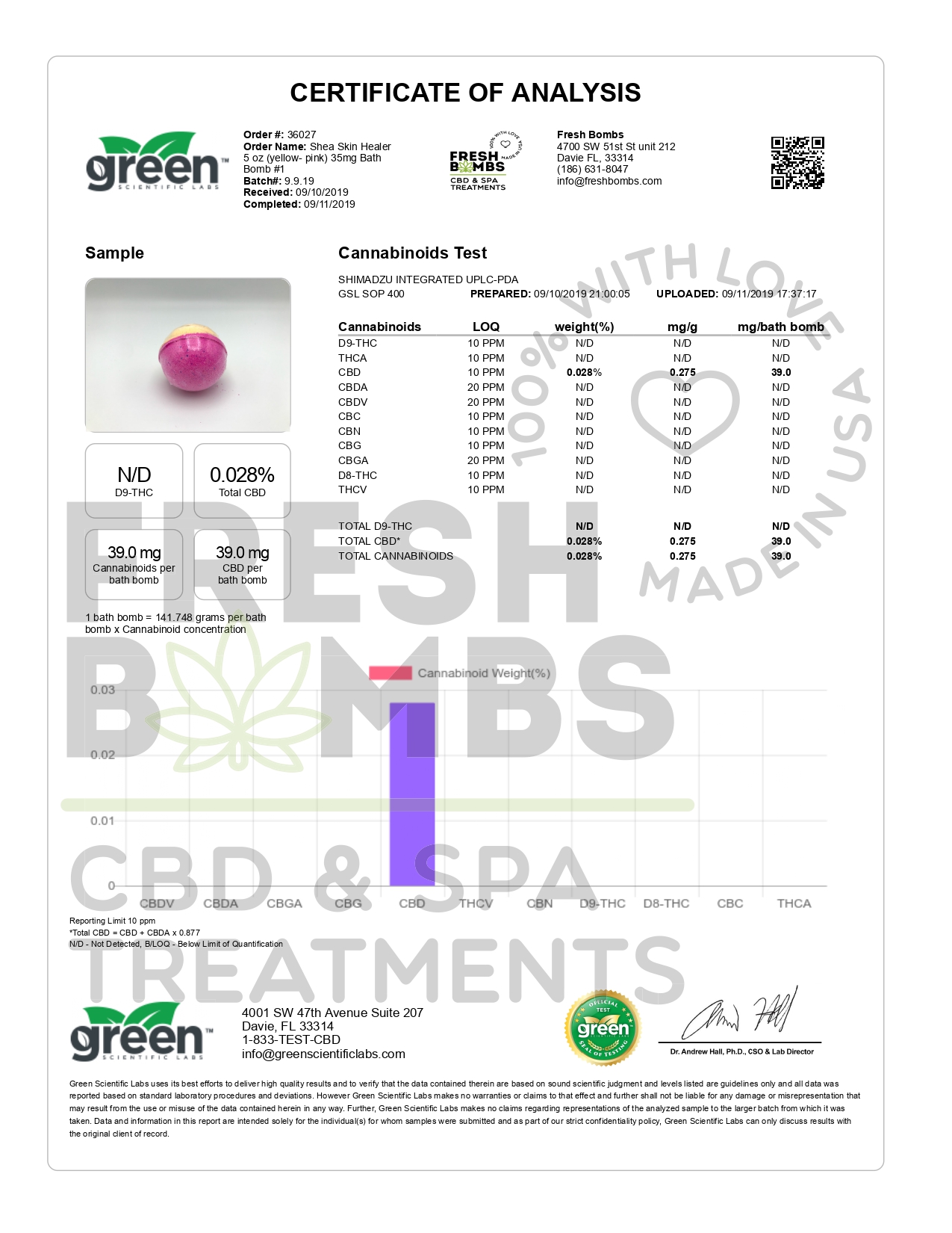 Fresh Bombs CBD Bath Pain Relief Bath Bomb Set Lab Report