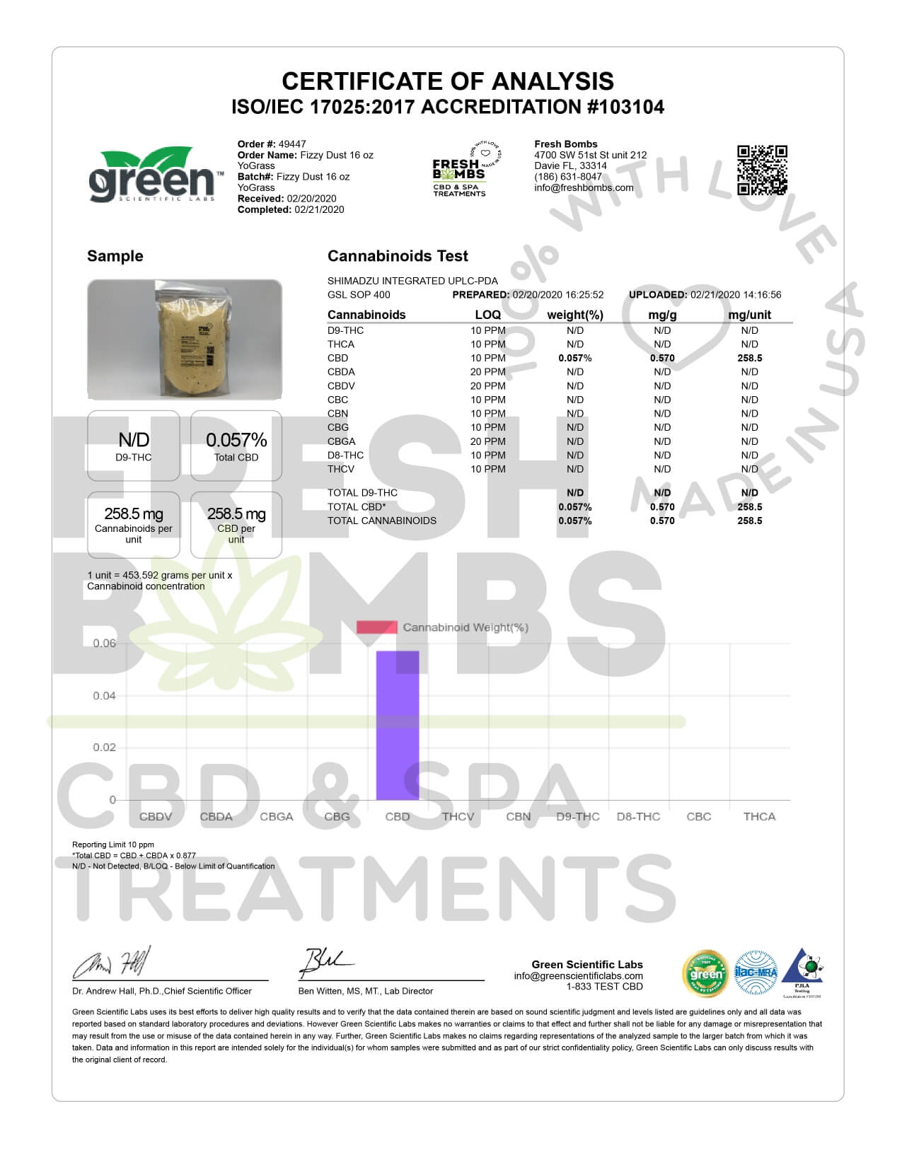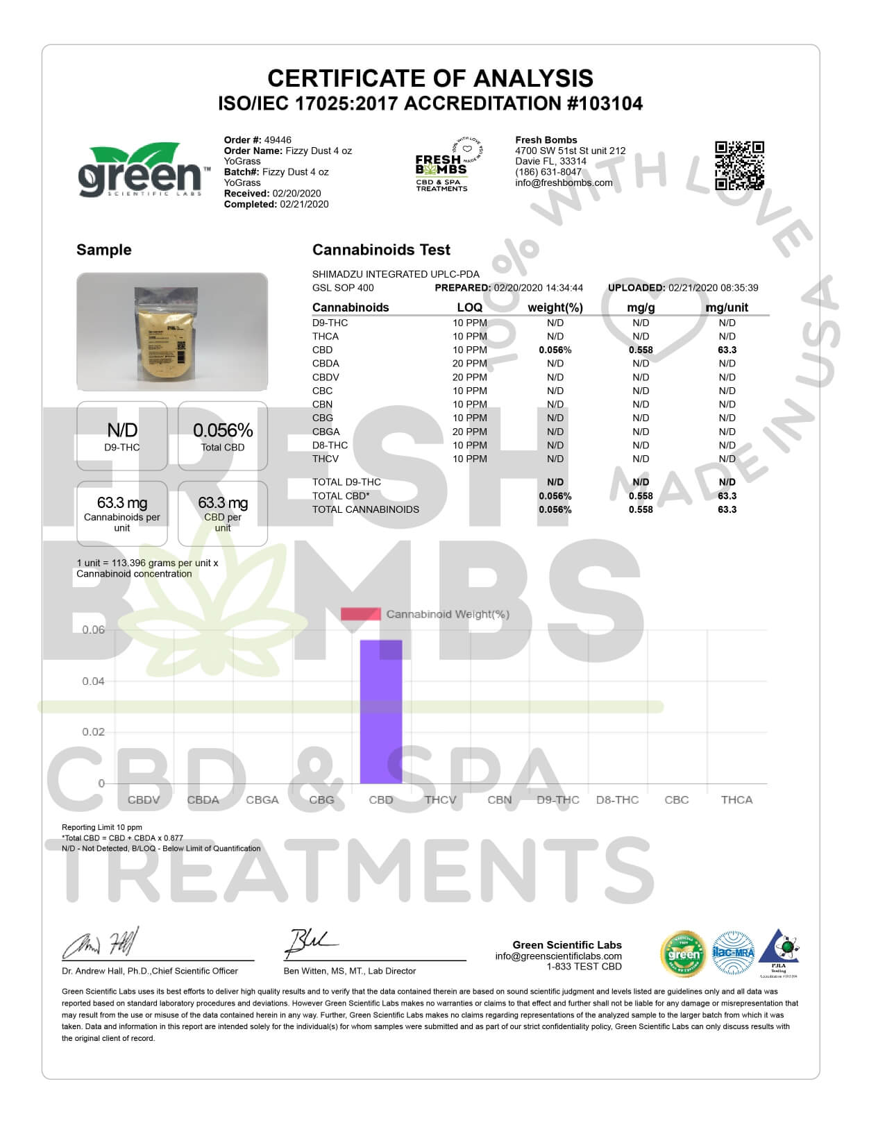 Fresh Bombs CBD Bath YoGrass Fizzy Dust Lab Report important details about vaping products.