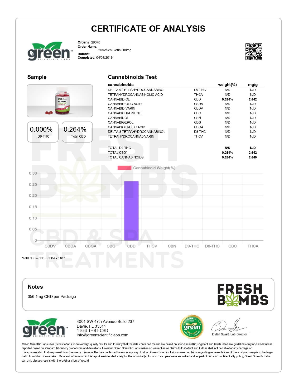 Fresh Bombs CBD Edible Biotin Plus Gummies Lab Report