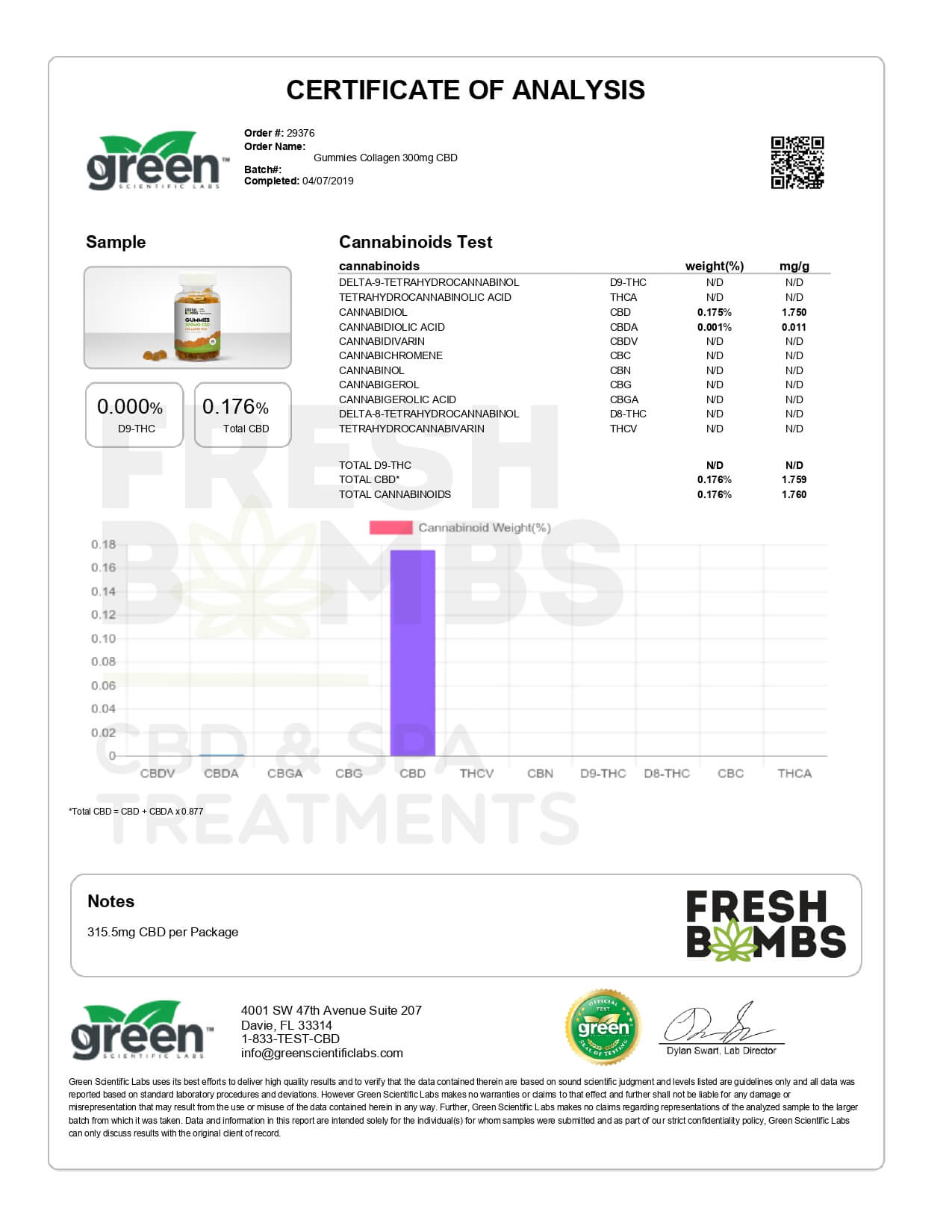 Fresh Bombs CBD Edible Collagen Plus Gummies Lab Report