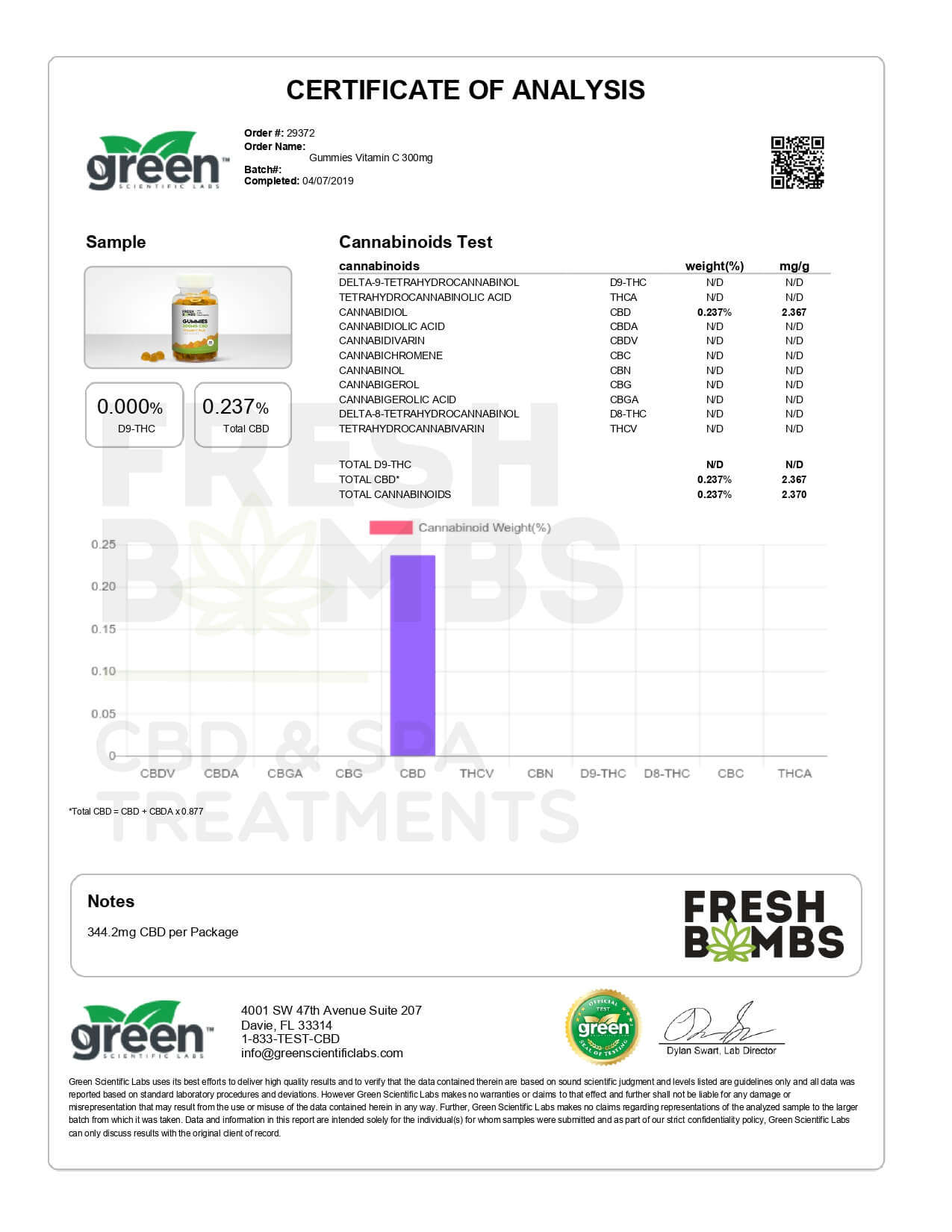 Fresh Bombs CBD Edible Vitamin C Plus Gummies Lab Report