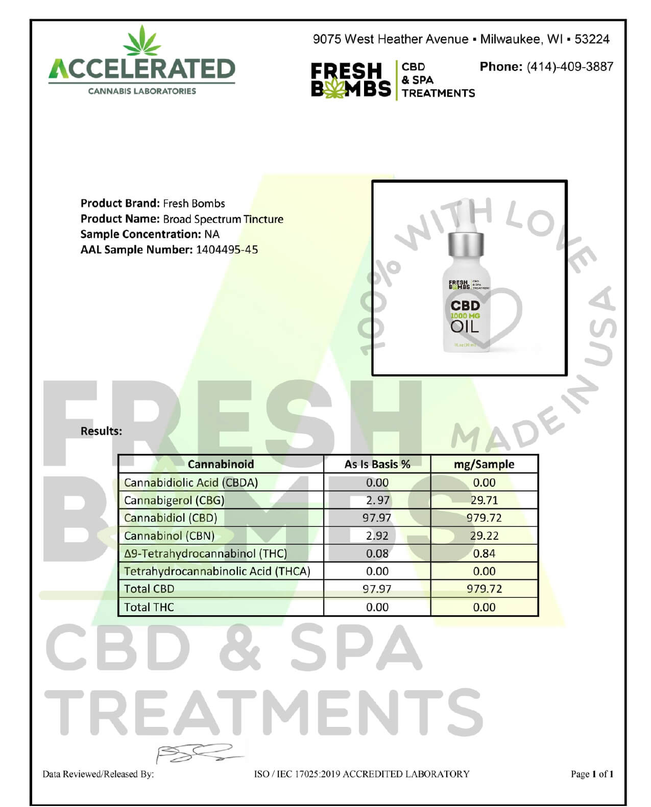 Fresh Bombs CBD Tincture Broad Spectrum Oil 1000mg Lab Report
