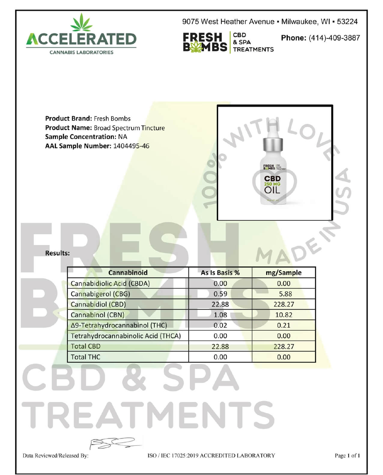 Fresh Bombs CBD Tincture Broad Spectrum Oil 250mg Lab Report