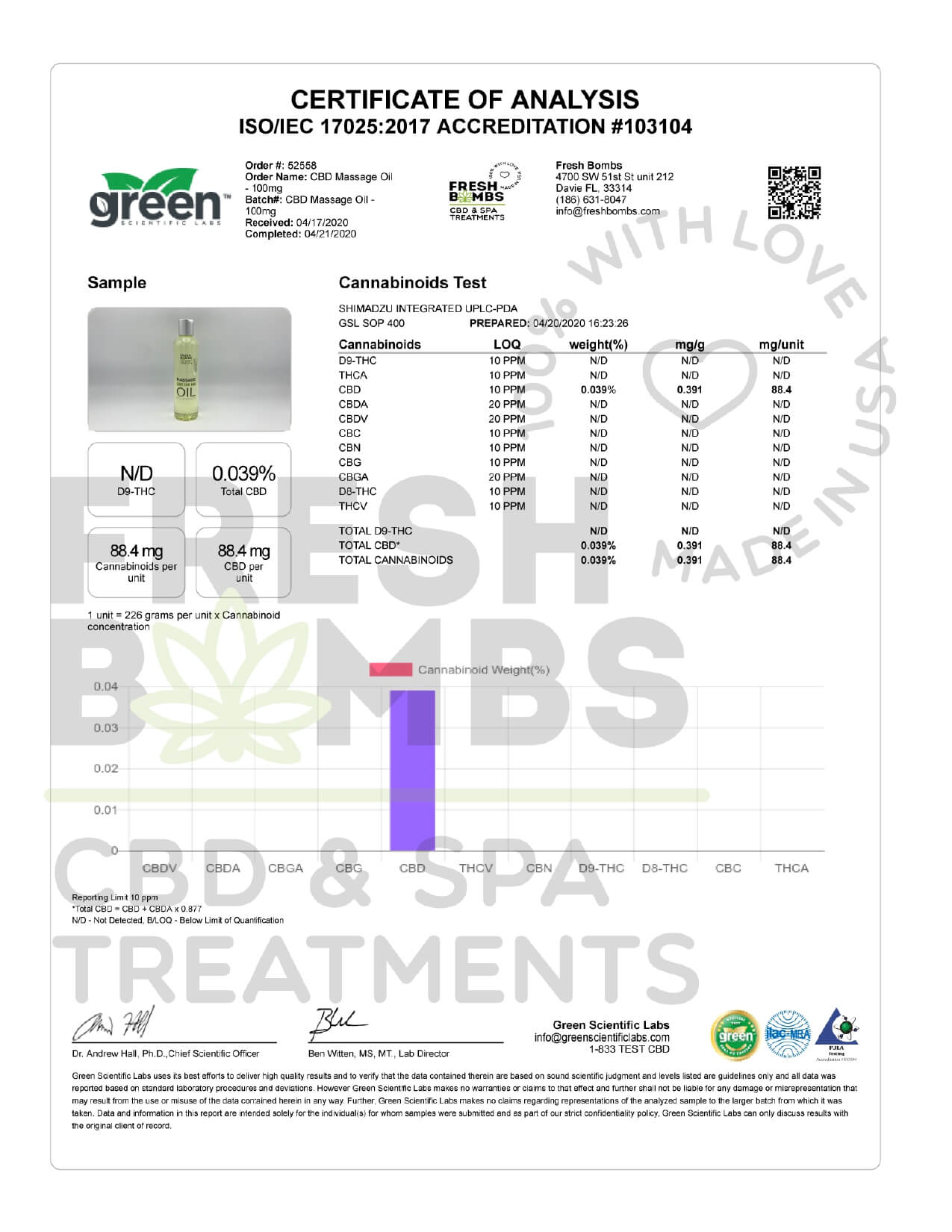 Fresh Bombs CBD Topical Full Spectrum Massage Oil Lab Report important details about vaping products.