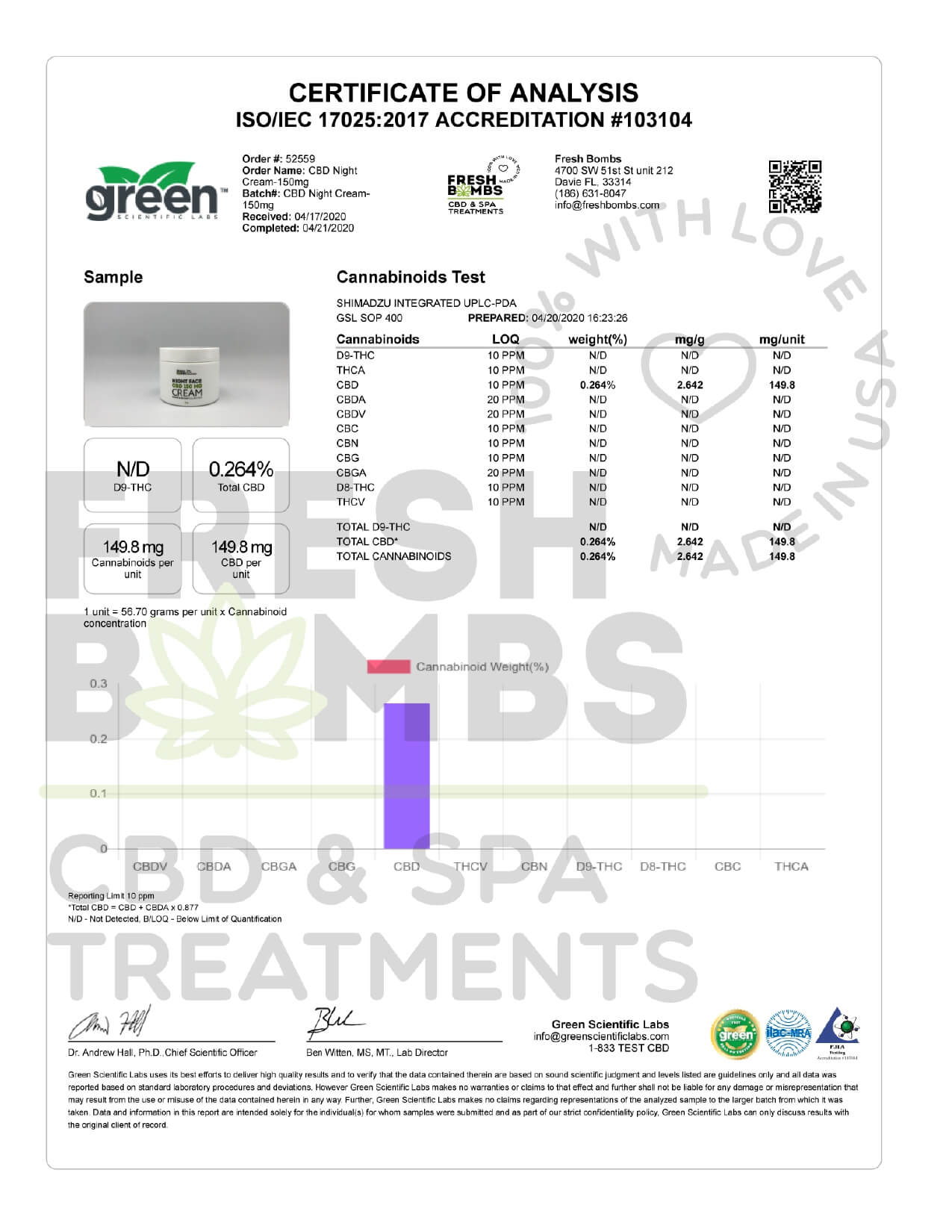 Fresh Bombs CBD Topical Night Face Cream Lab Report