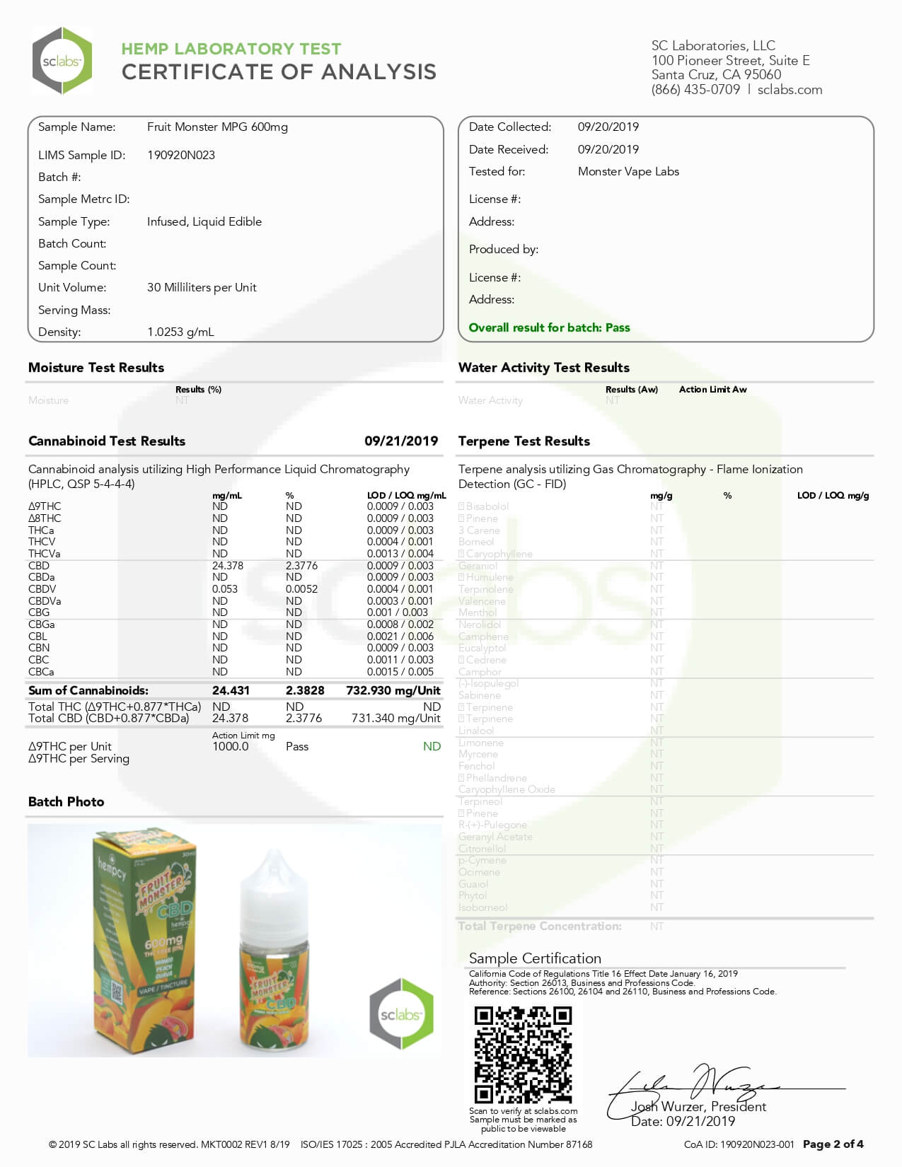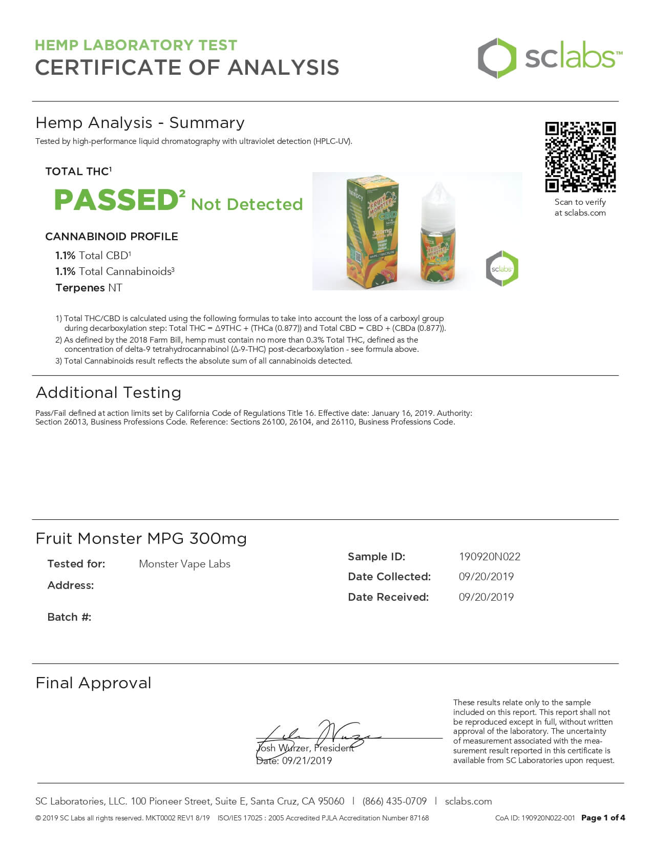 Fruit Monster CBD Vape Mango Peach Guava Lab Report important details about vaping products.