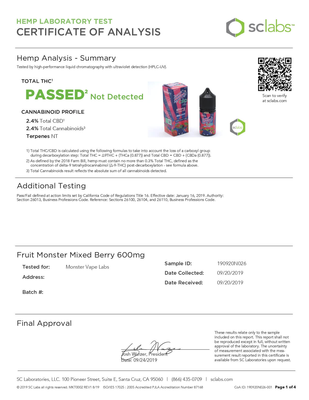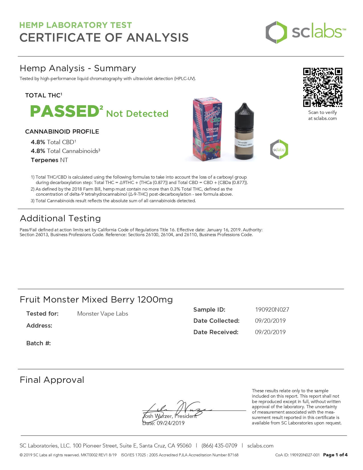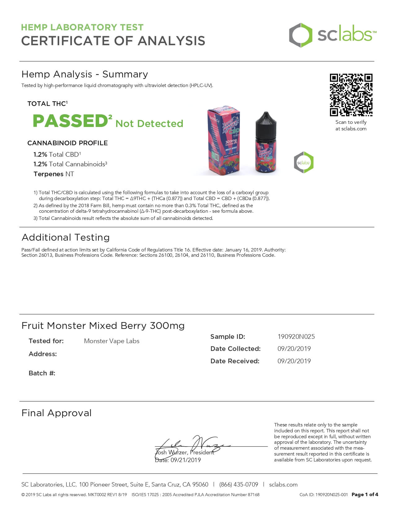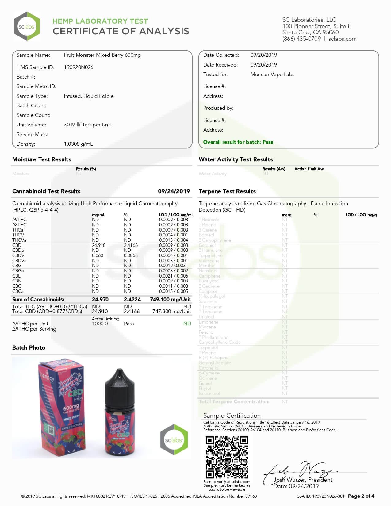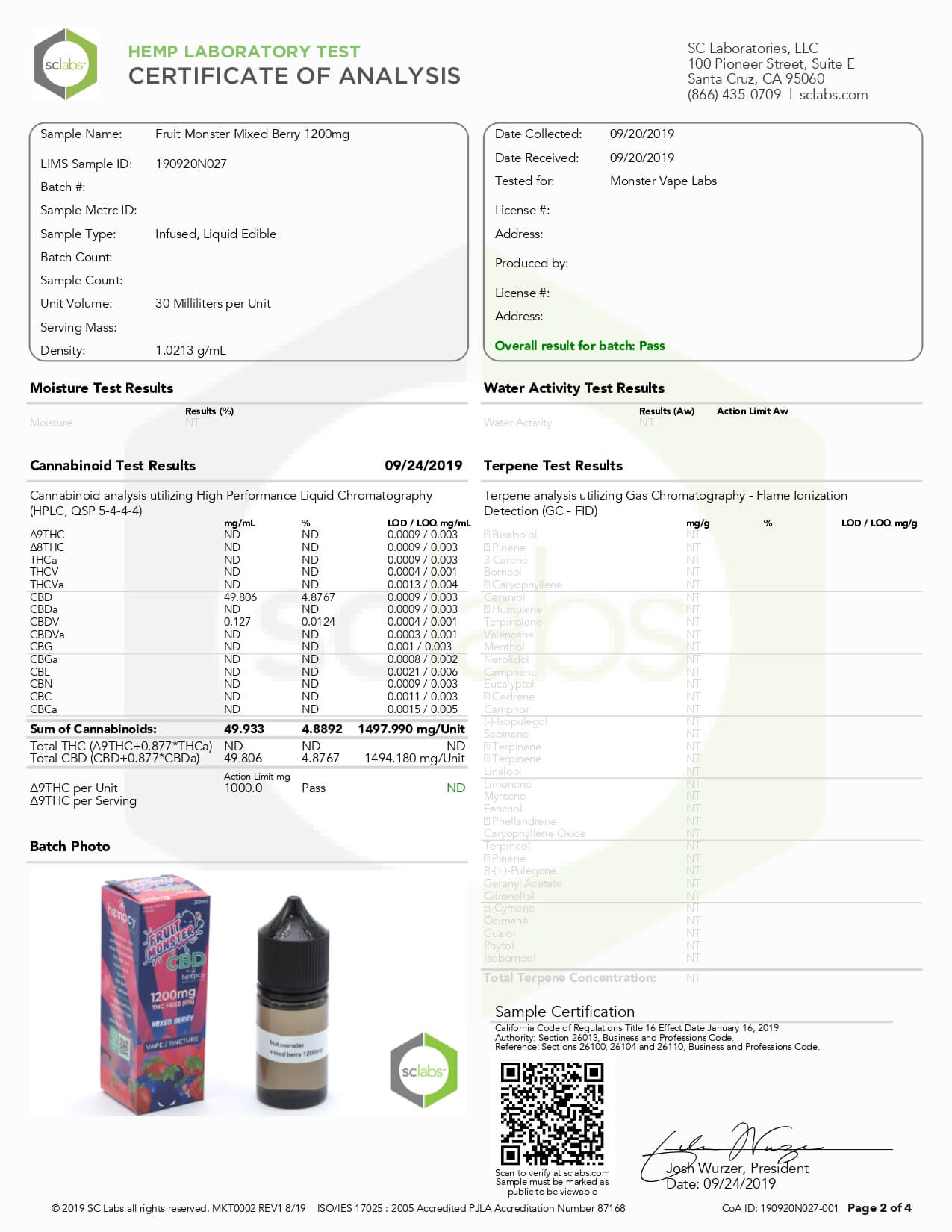 Fruit Monster CBD Vape Mixed Berry Lab Report important details about vaping products.