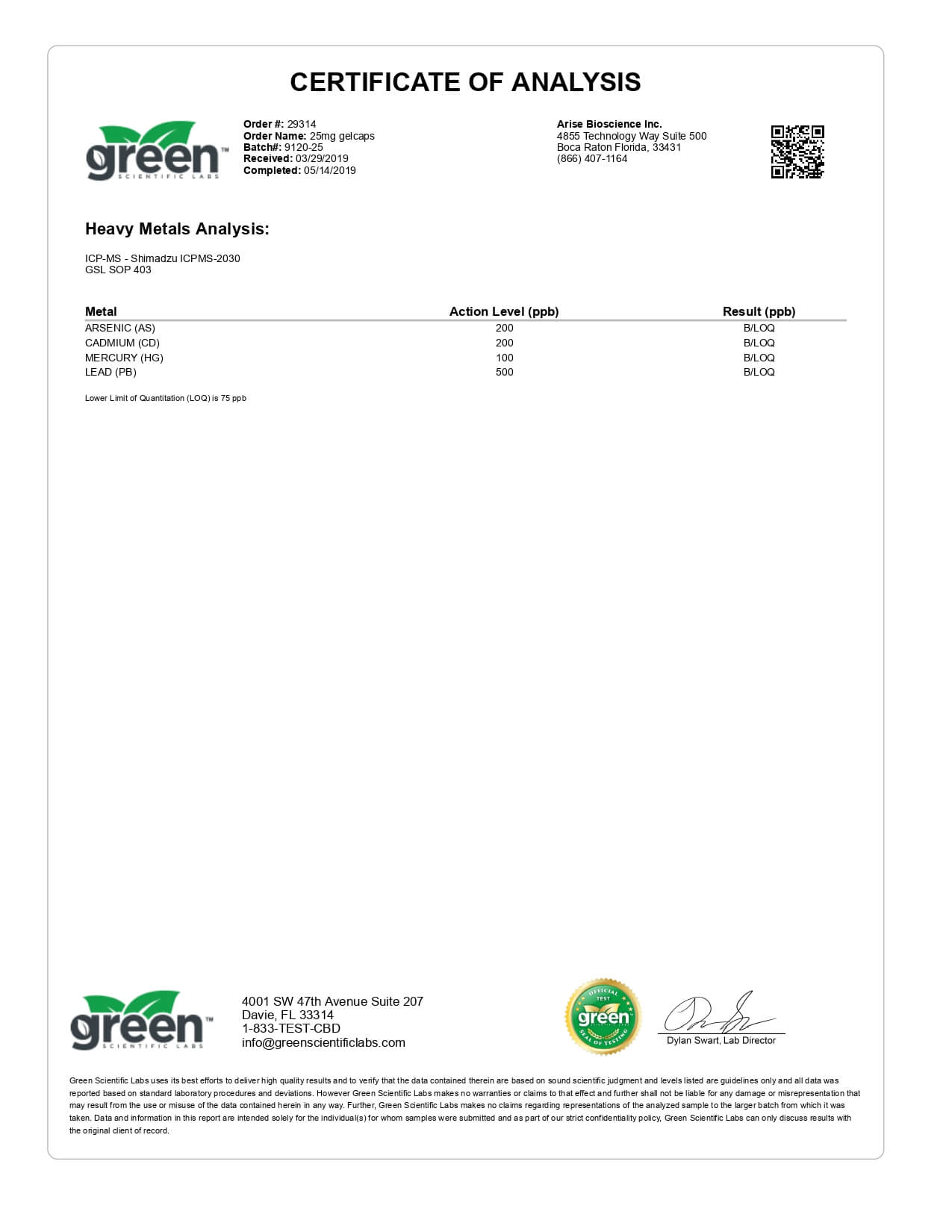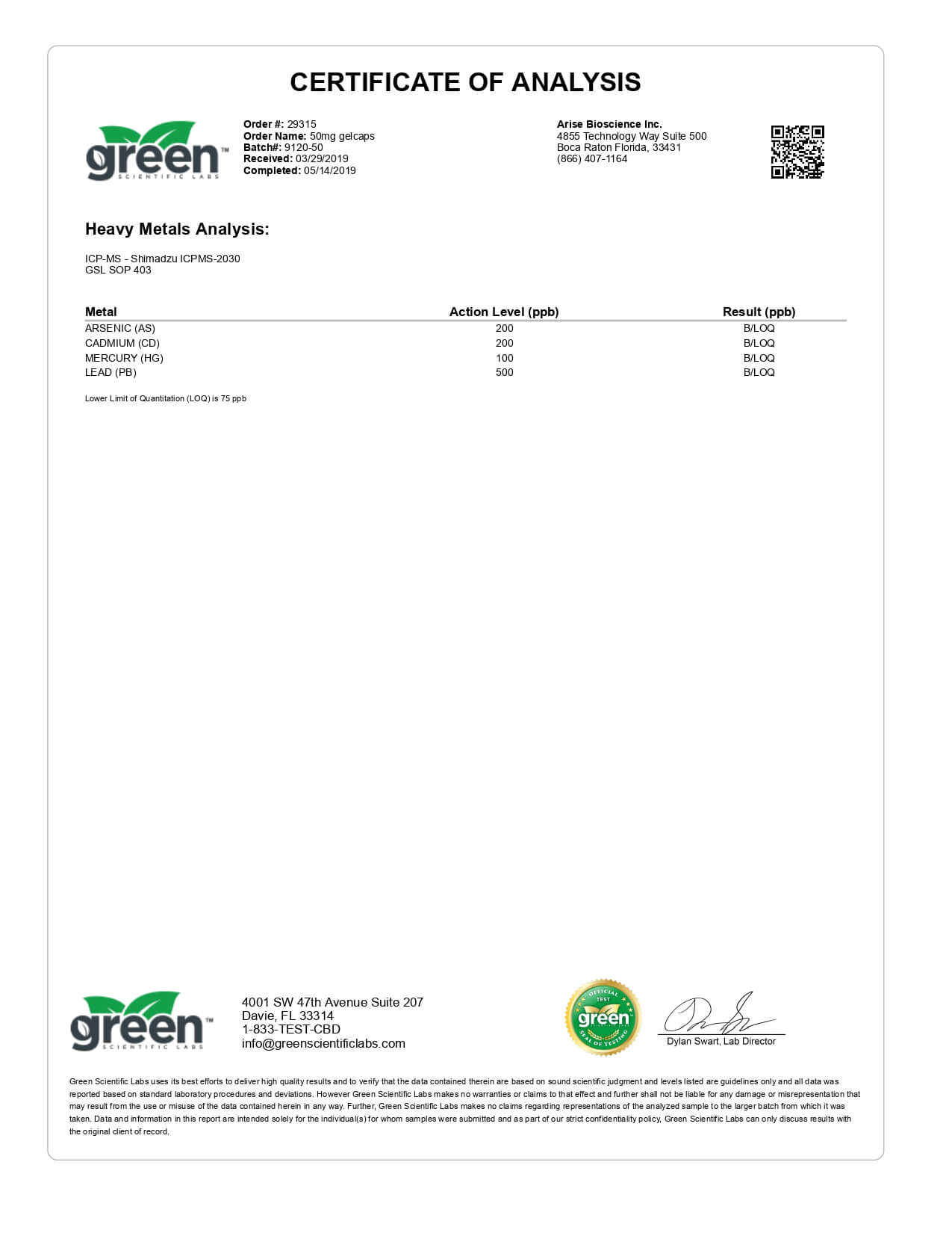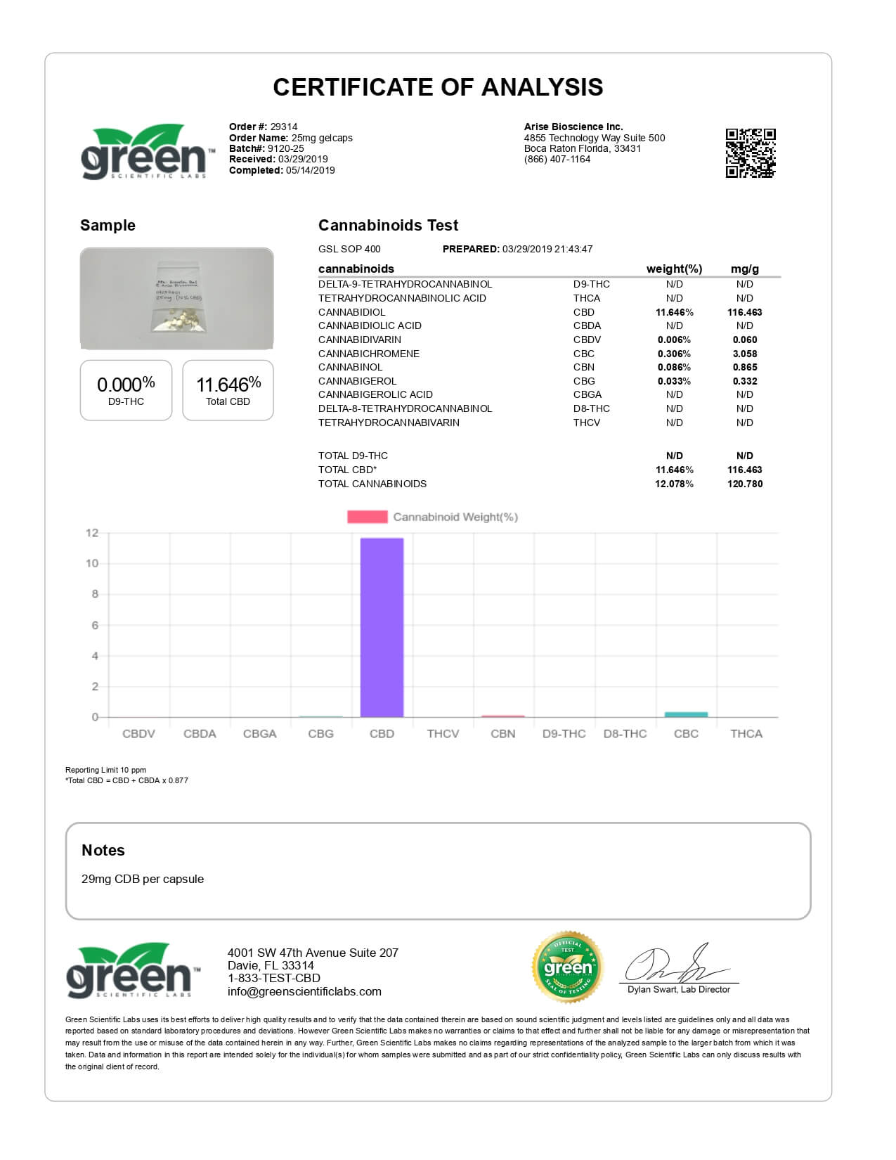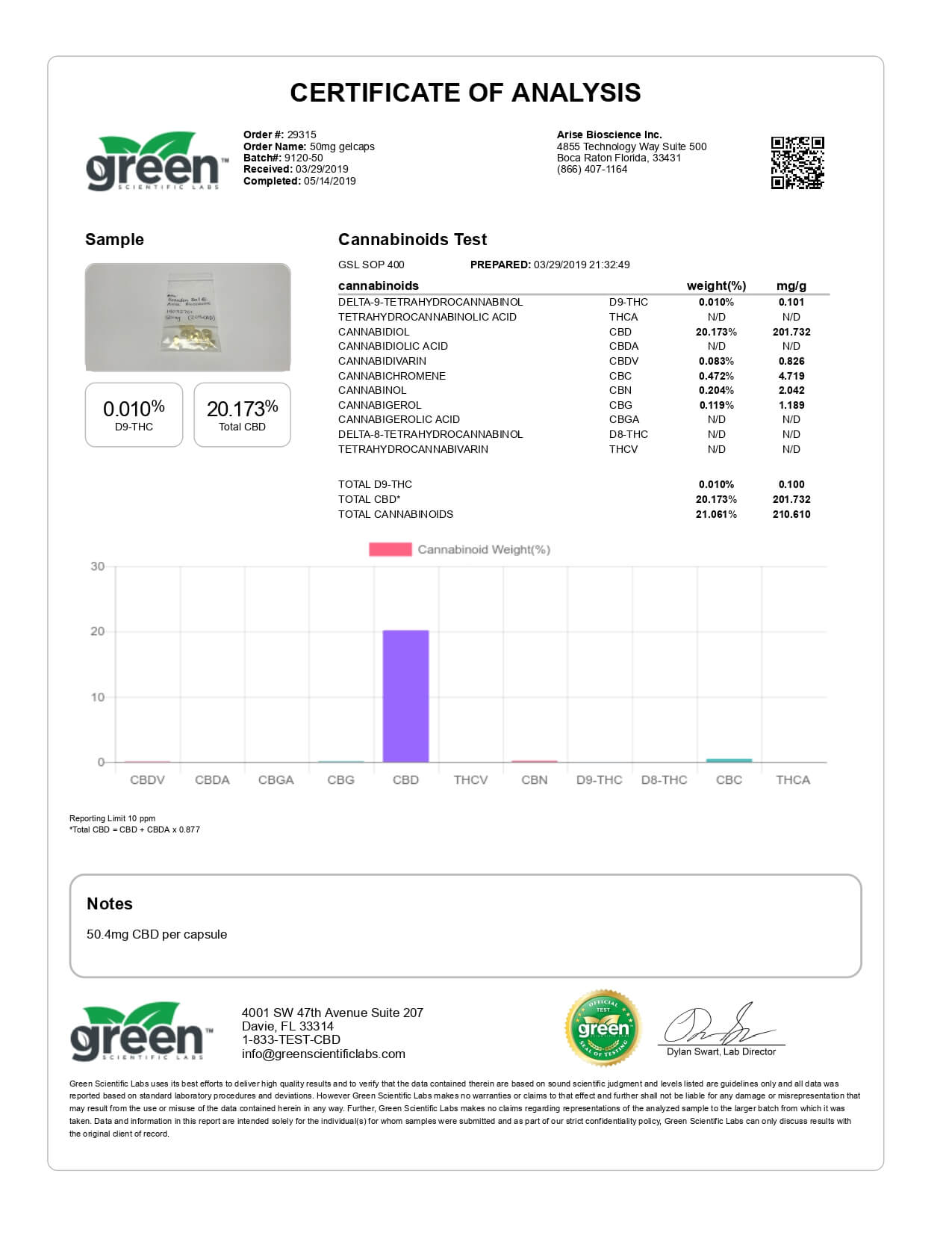 Funky Farms CBD Gel Caps 750mg Lab Report