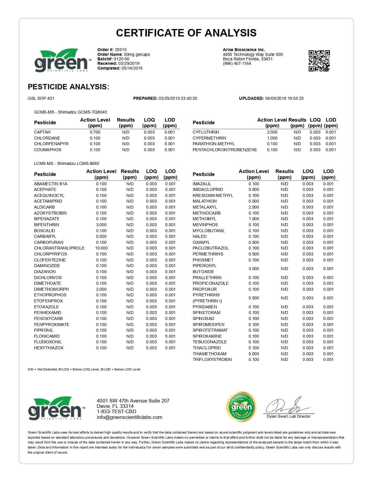 Funky Farms CBD Gel Caps Lab Report important details about vaping products.