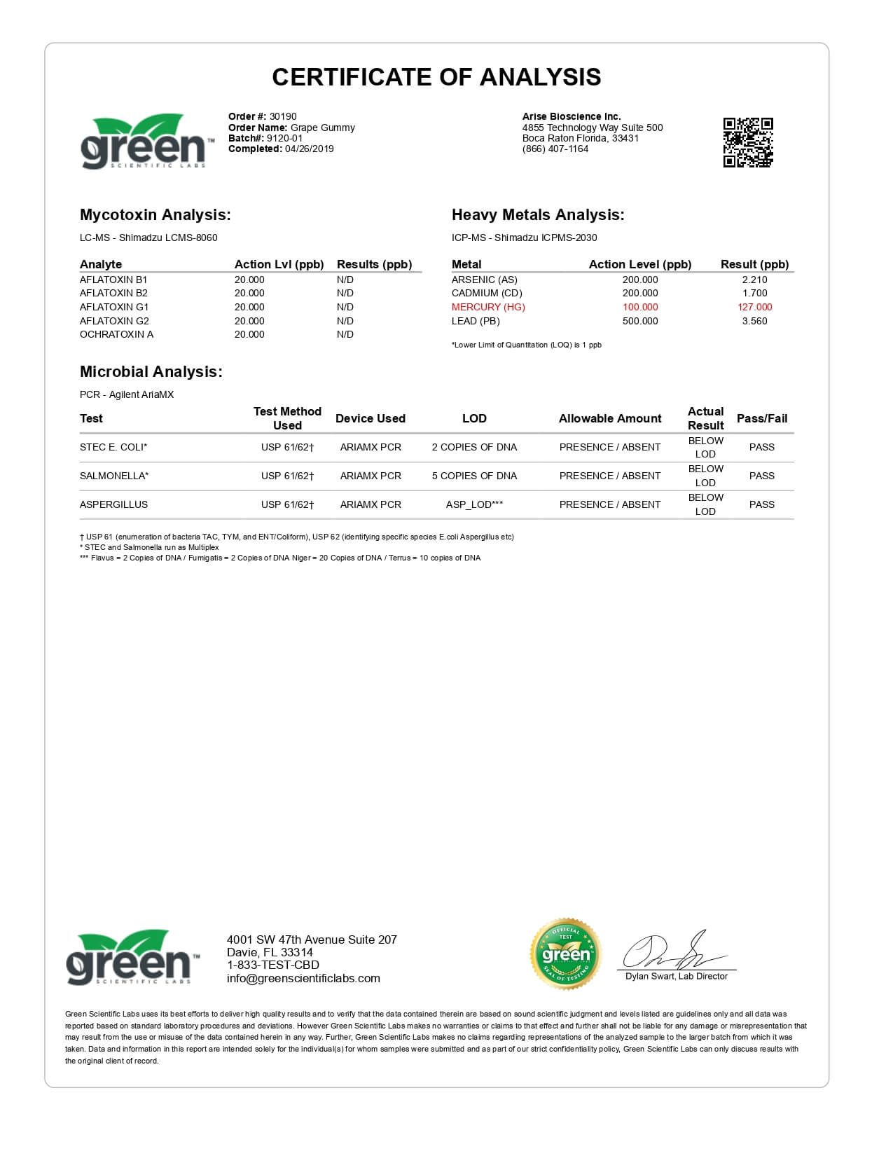 Funky Farms CBD Gummies Grape Lab Report