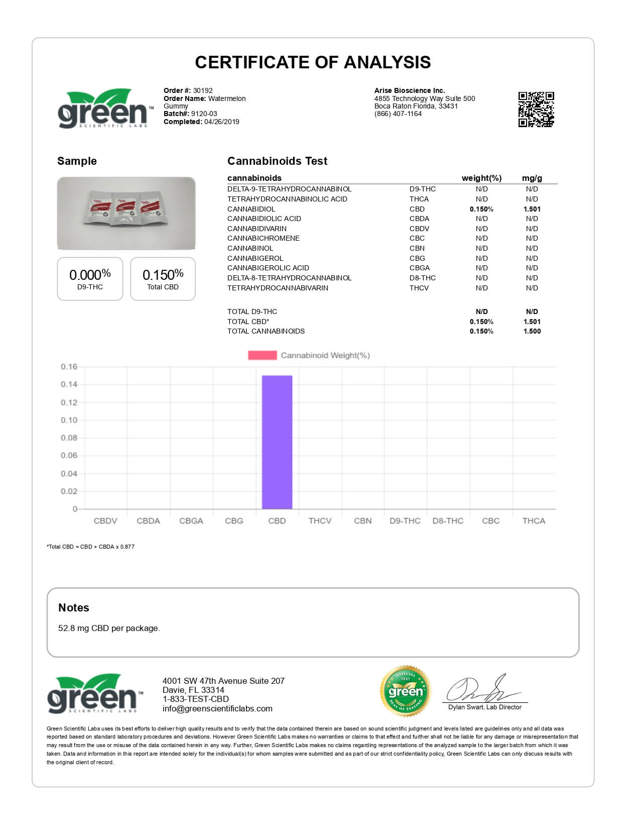 Funky Farms CBD Gummies Watermelon 50mg Lab Report