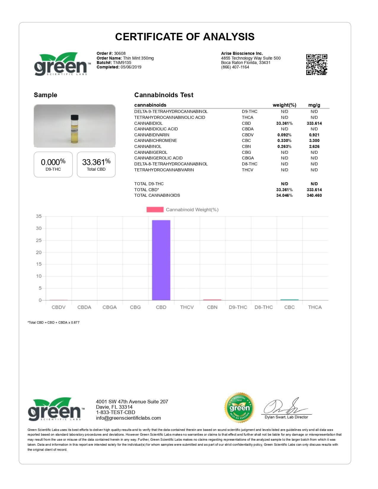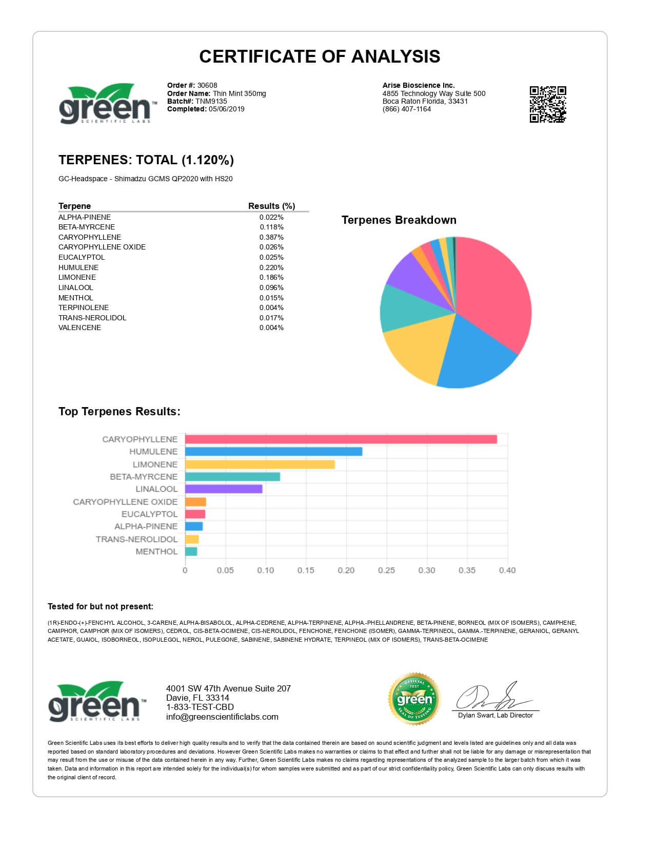Funky Farms CBD Terpene Cartridge Chocolate Mint Lab Report