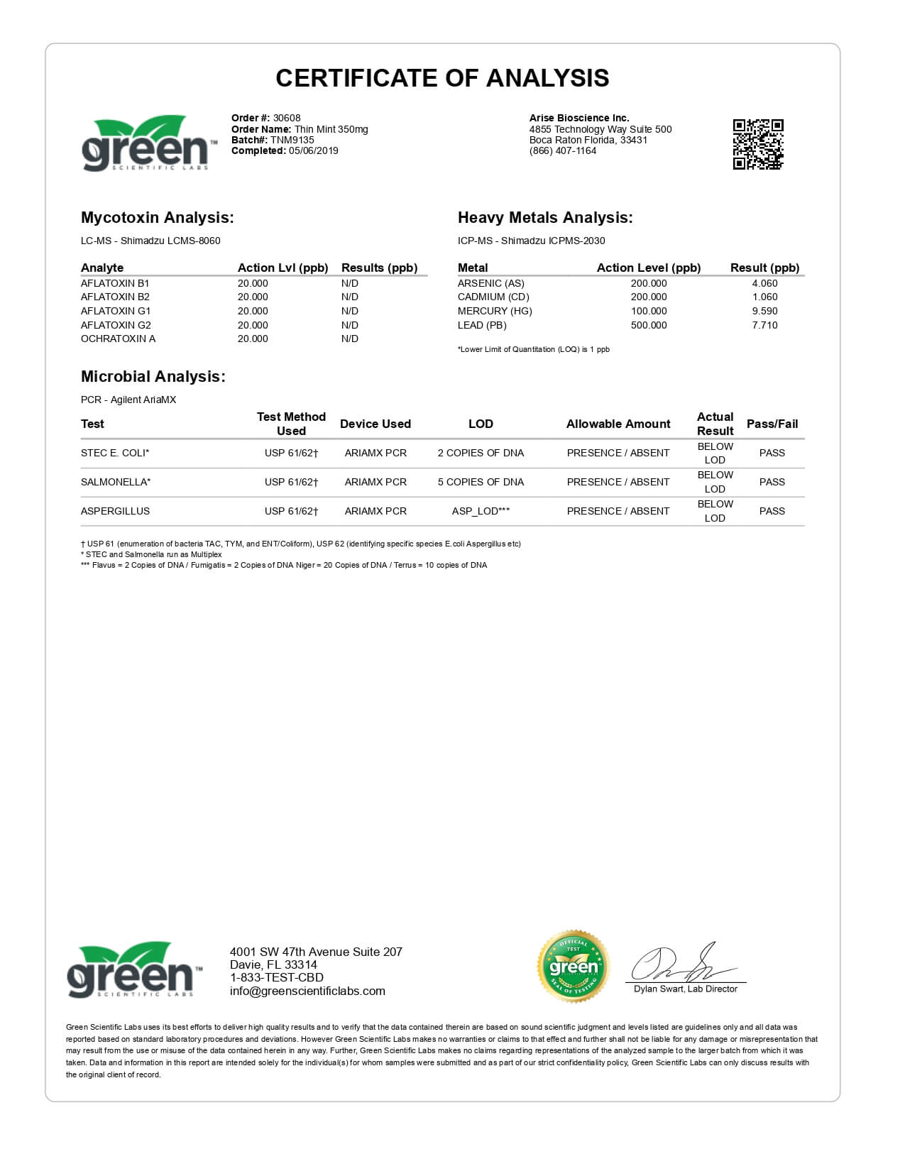 Funky Farms CBD Terpene Cartridge Chocolate Mint Lab Report important details about vaping products.