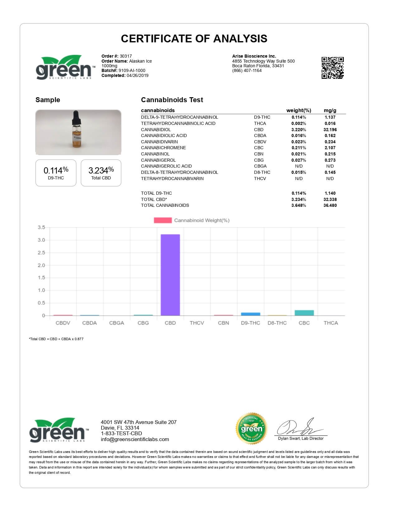Funky Farms CBD Tincture Alaskan Ice 1000mg Lab Report