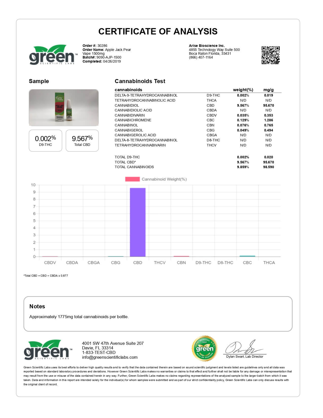 Funky Farms CBD Vape Apple Jack Pear 1500mg Lab Report