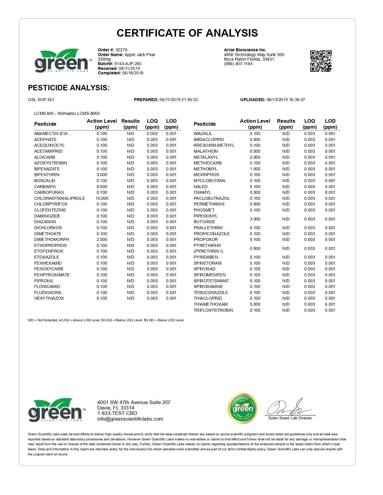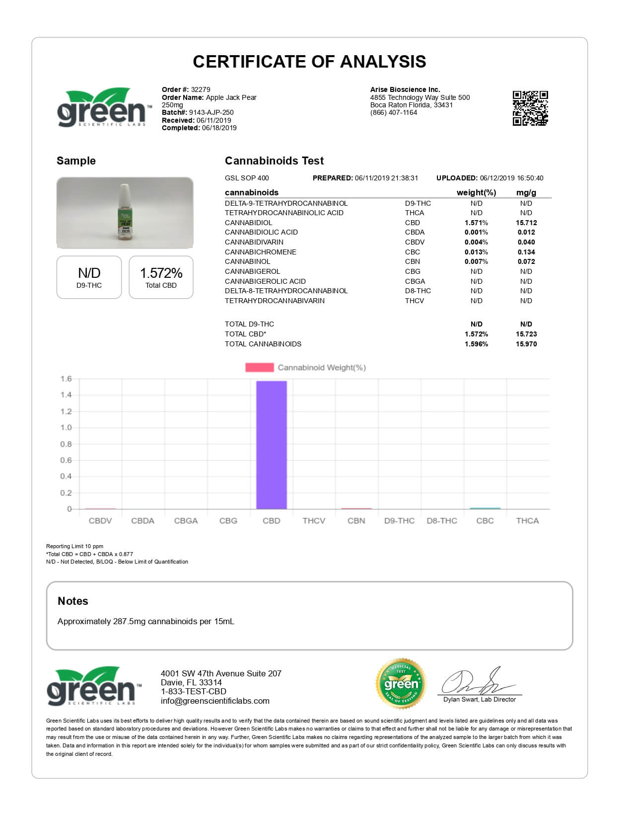 Funky Farms CBD Vape Apple Jack Pear 250mg Lab Report