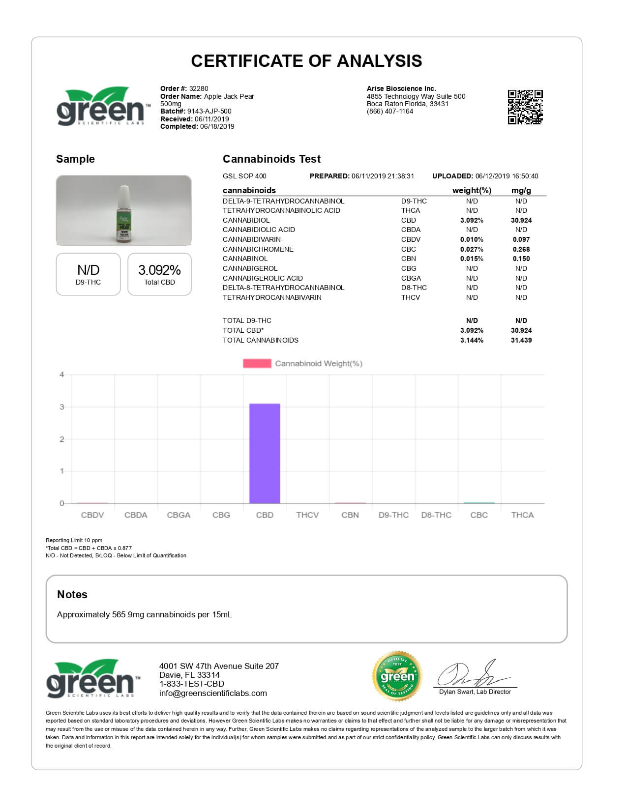 Funky Farms CBD Vape Apple Jack Pear 500mg Lab Report