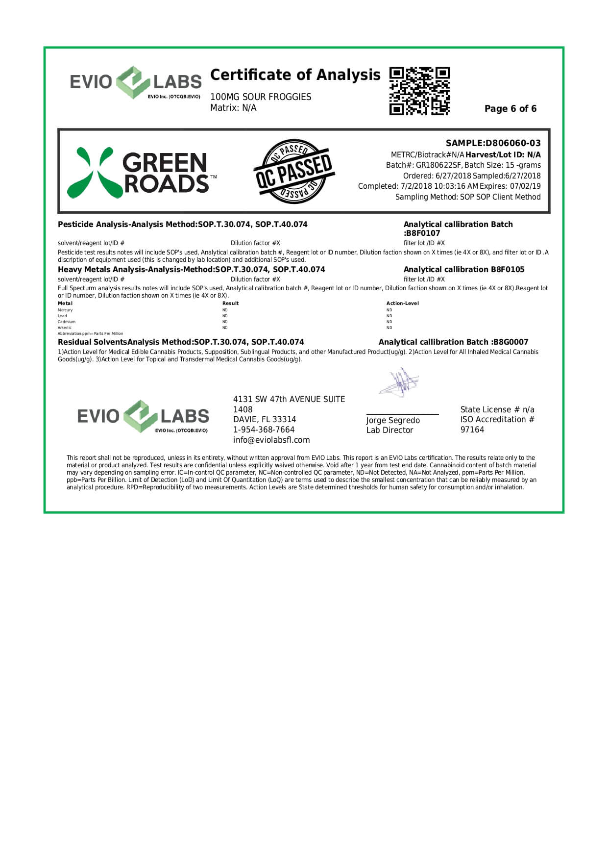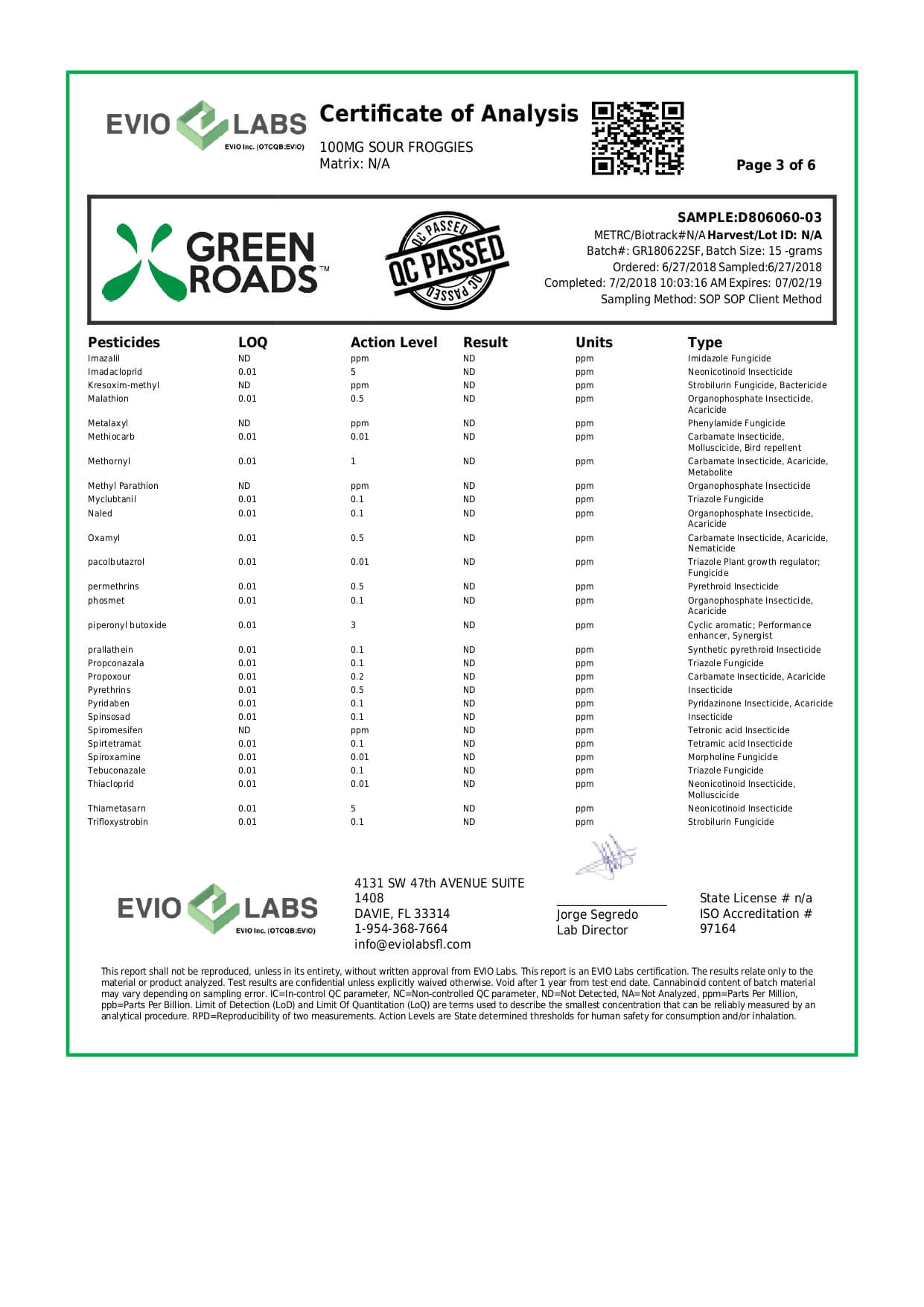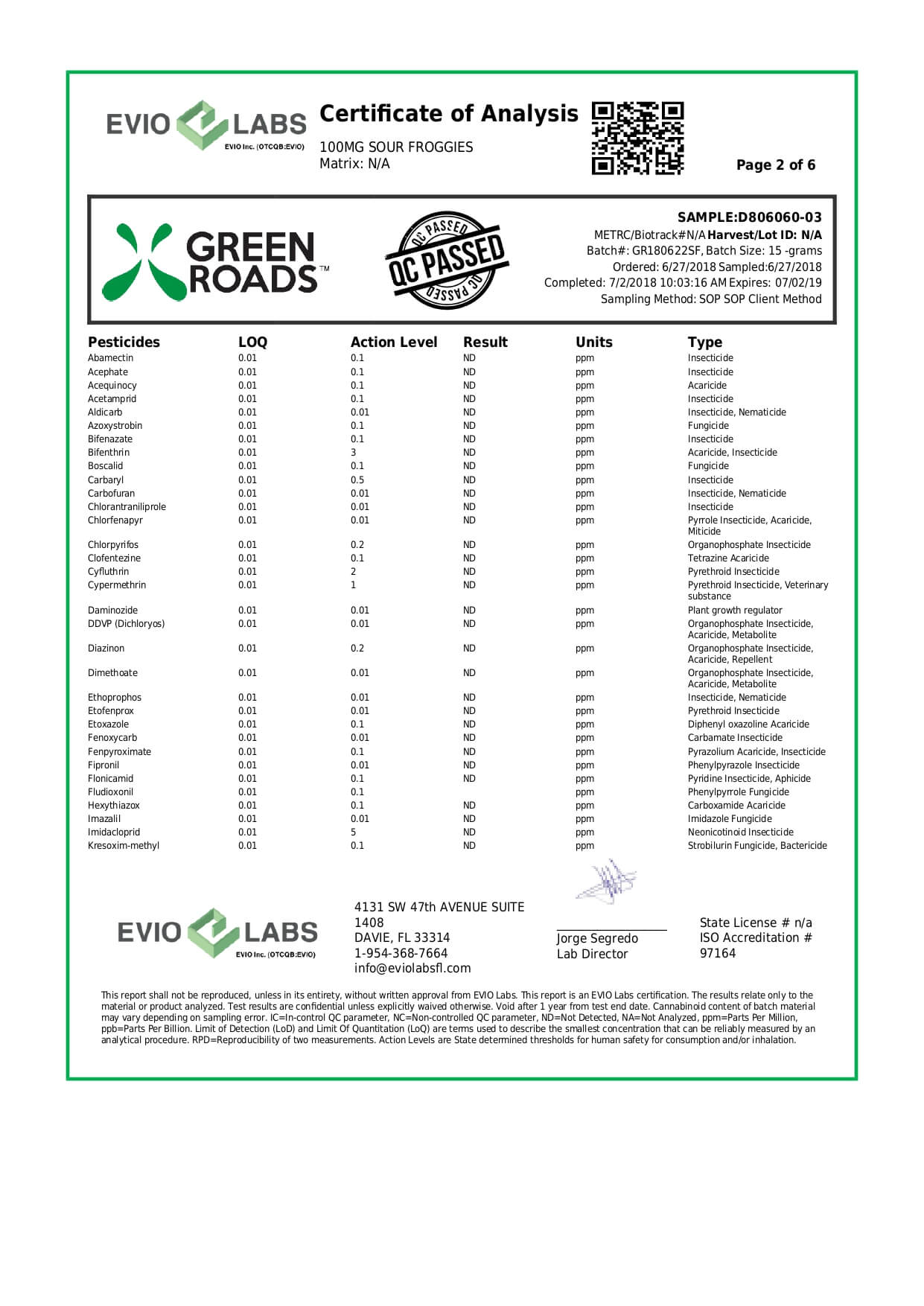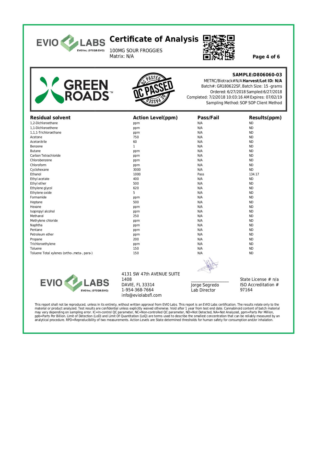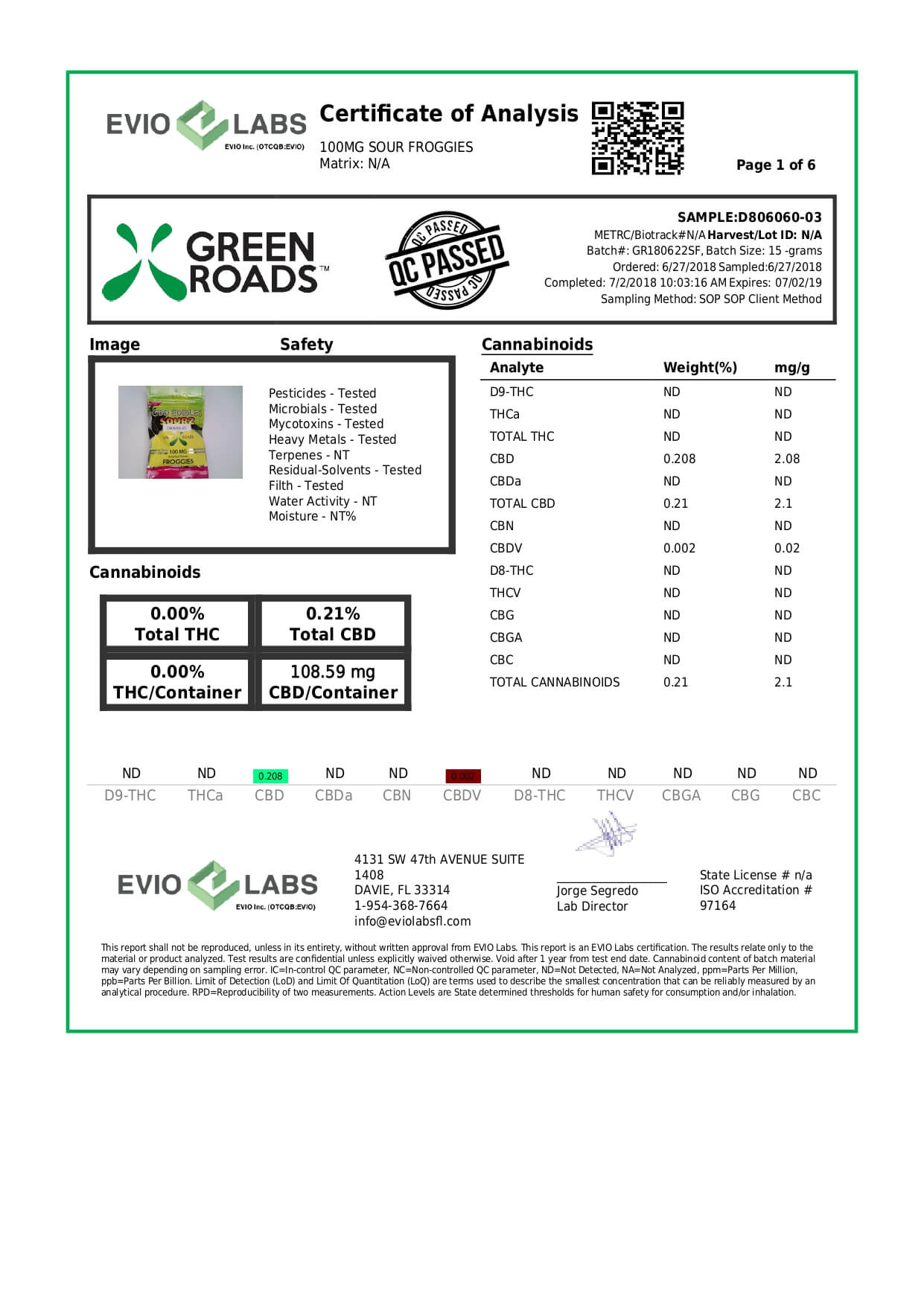 Green Roads CBD Edible Froggies SOURZ Lab Report important details about vaping products.