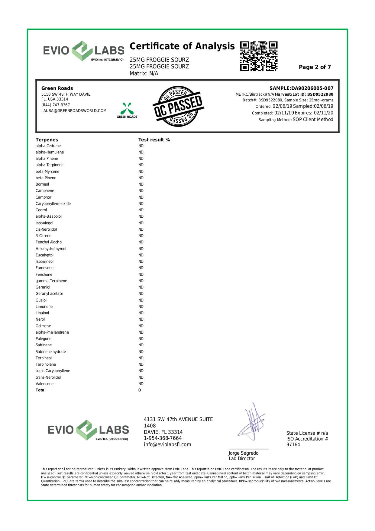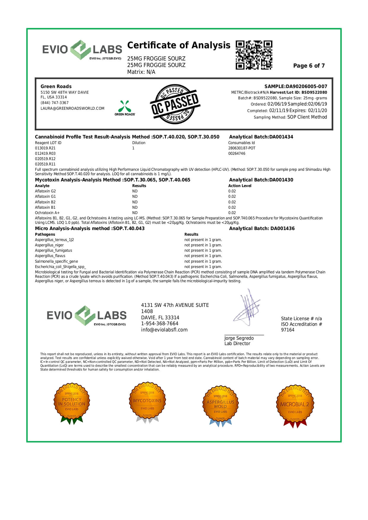 Green Roads CBD Edible Froggies SOURZ OTG Lab Report