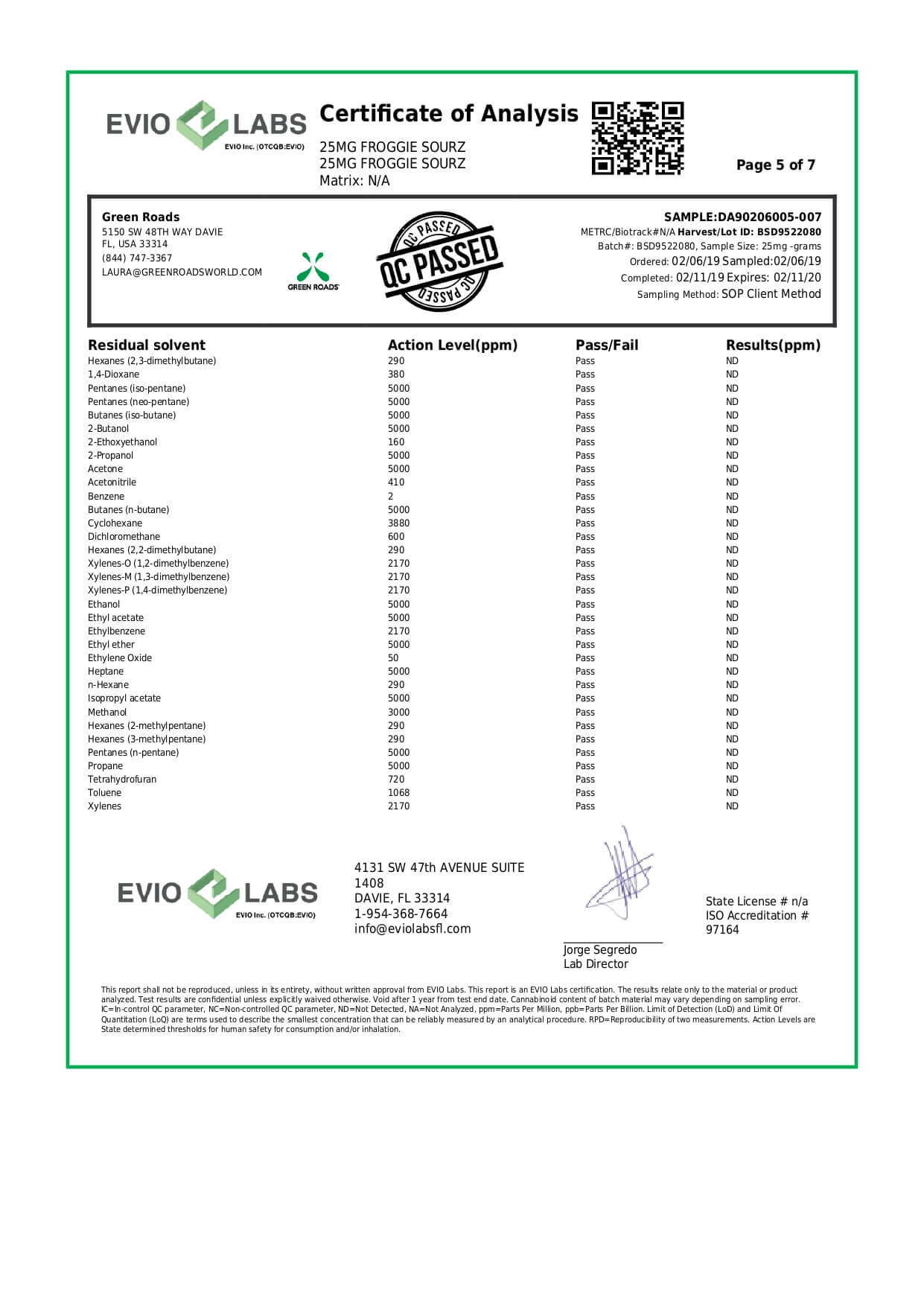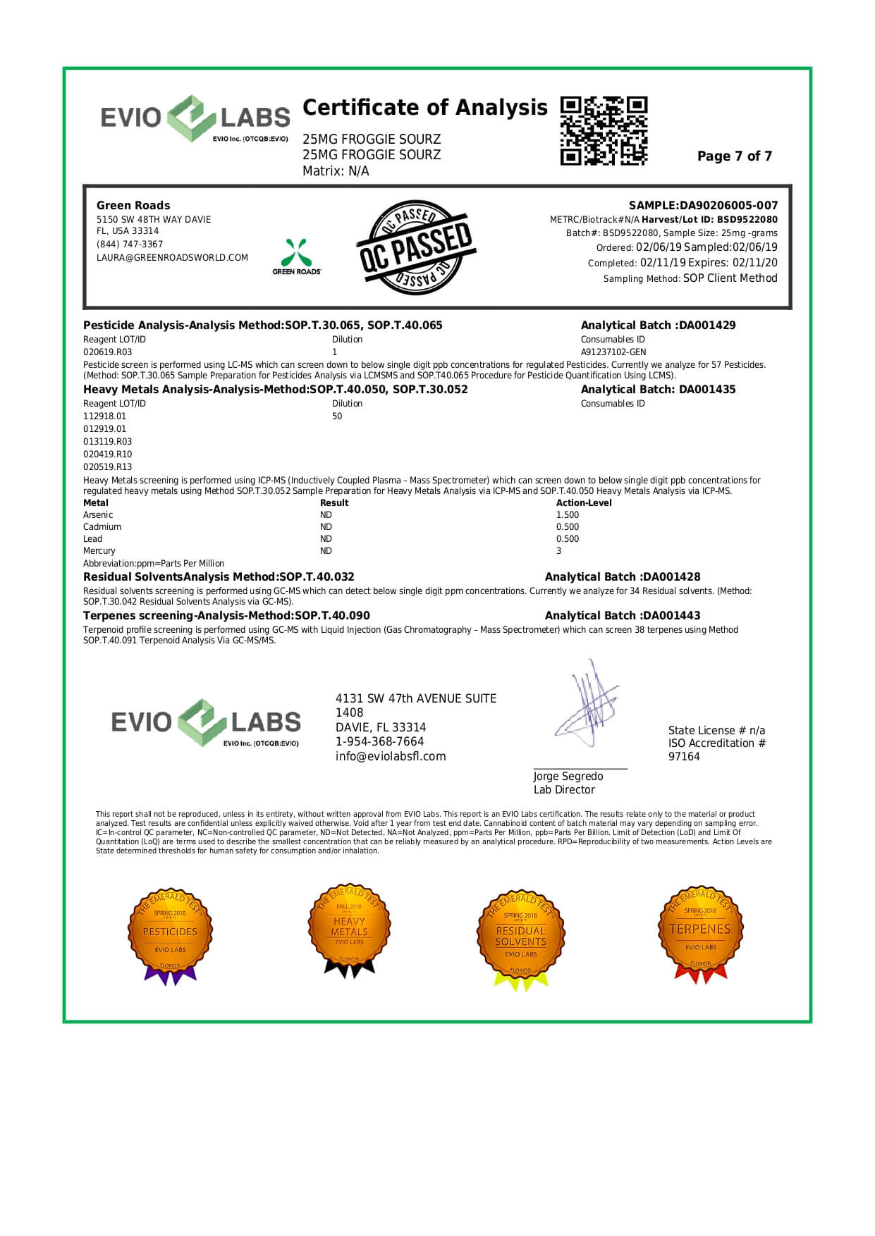 Green Roads CBD Edible Froggies SOURZ OTG Lab Report important details about vaping products.