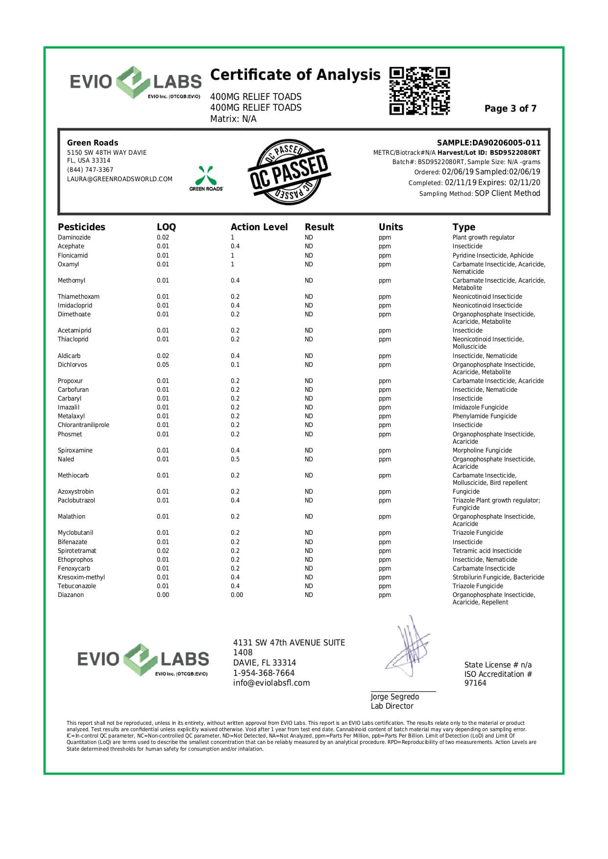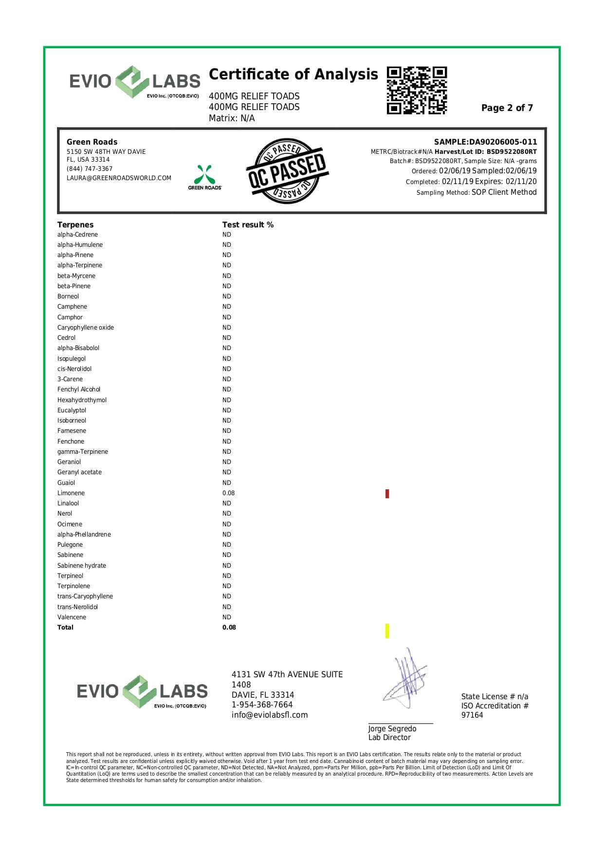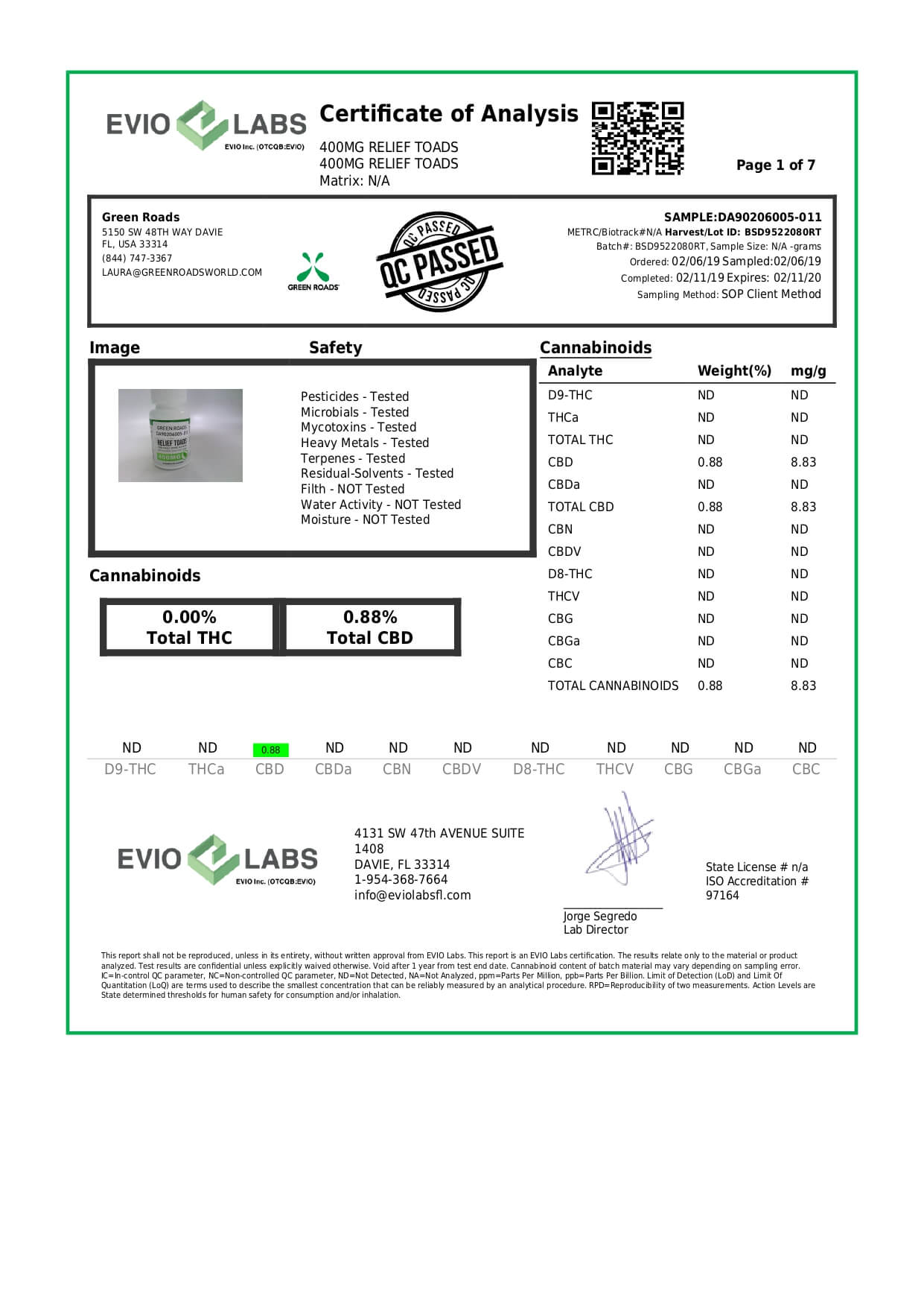 Green Roads CBD Edible Relief Toads Lab Report important details about vaping products.