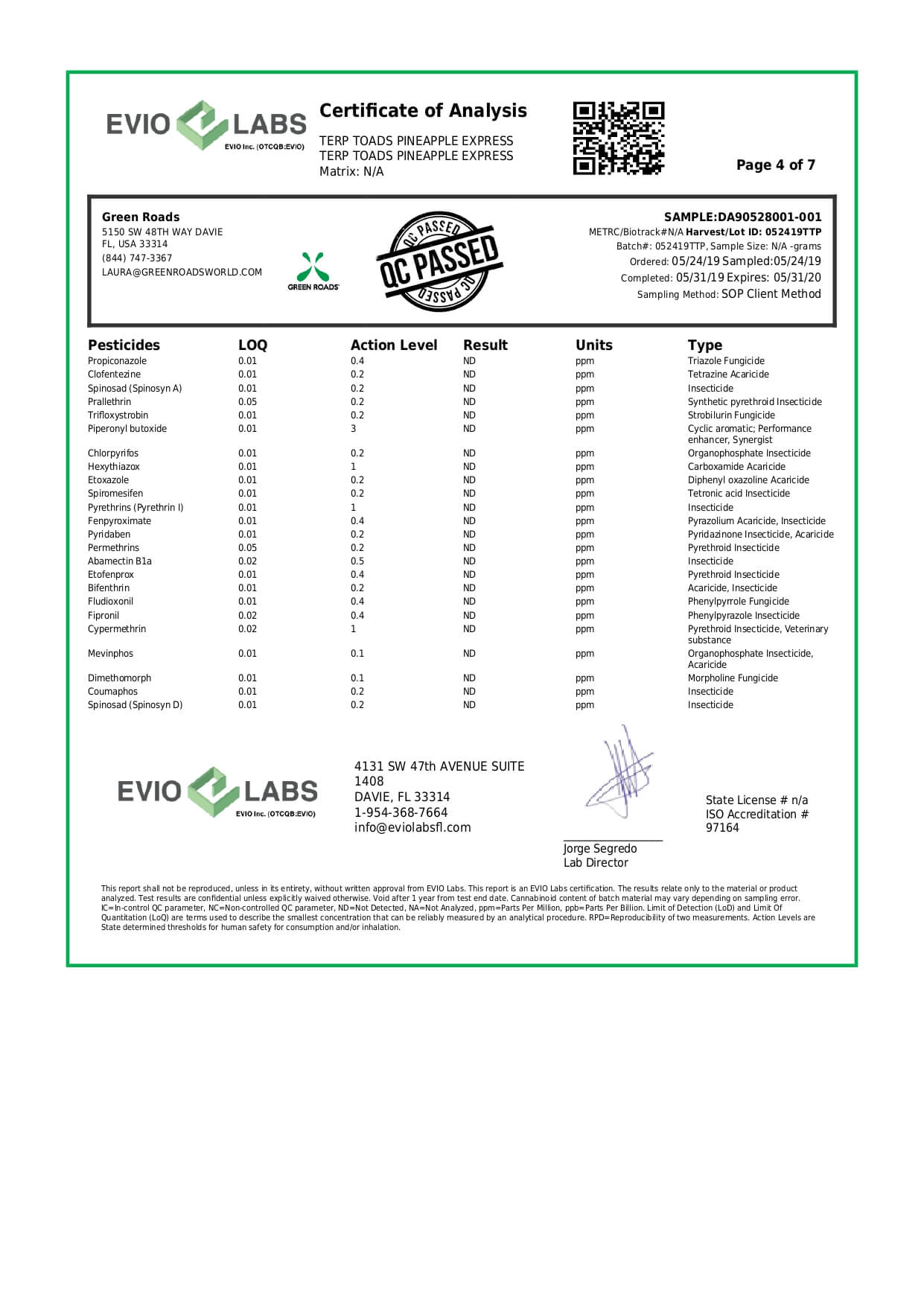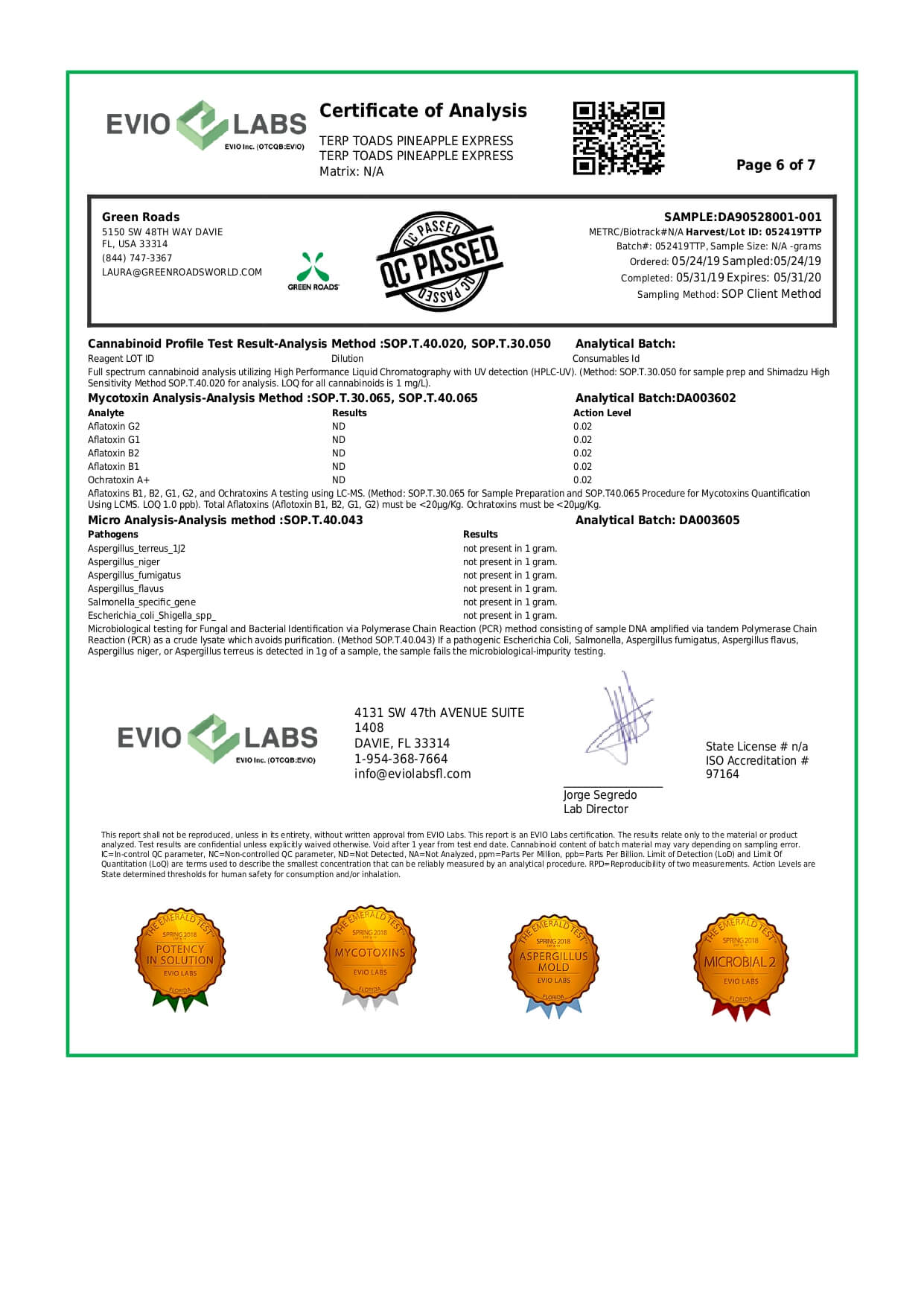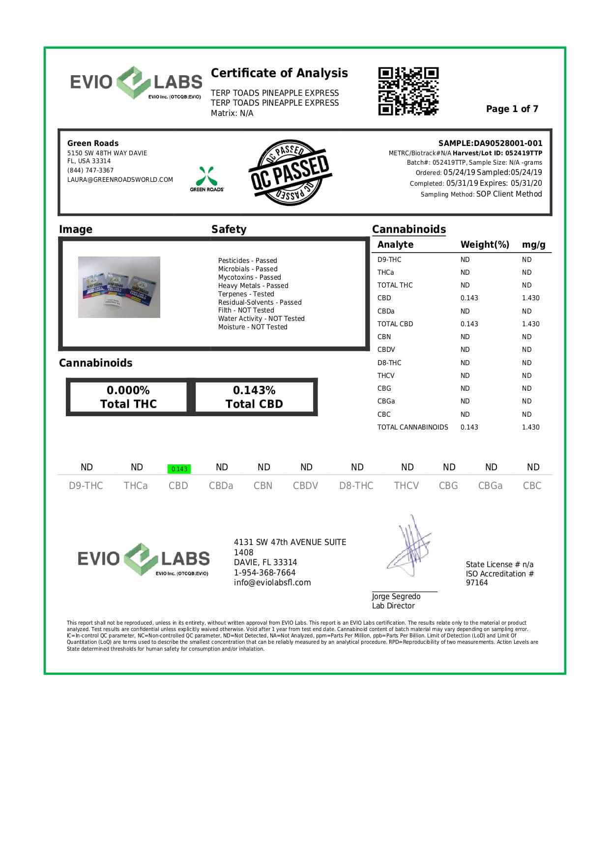 Green Roads CBD Edible Terp Toads OTG Lab Report important details about vaping products.