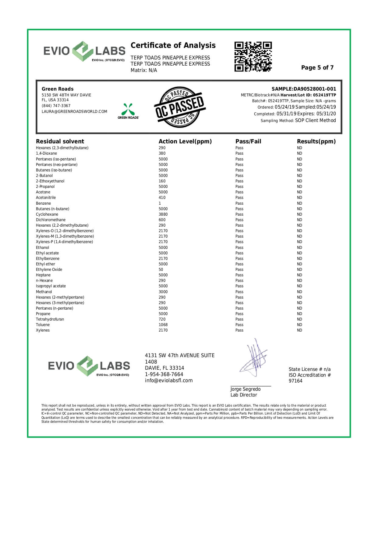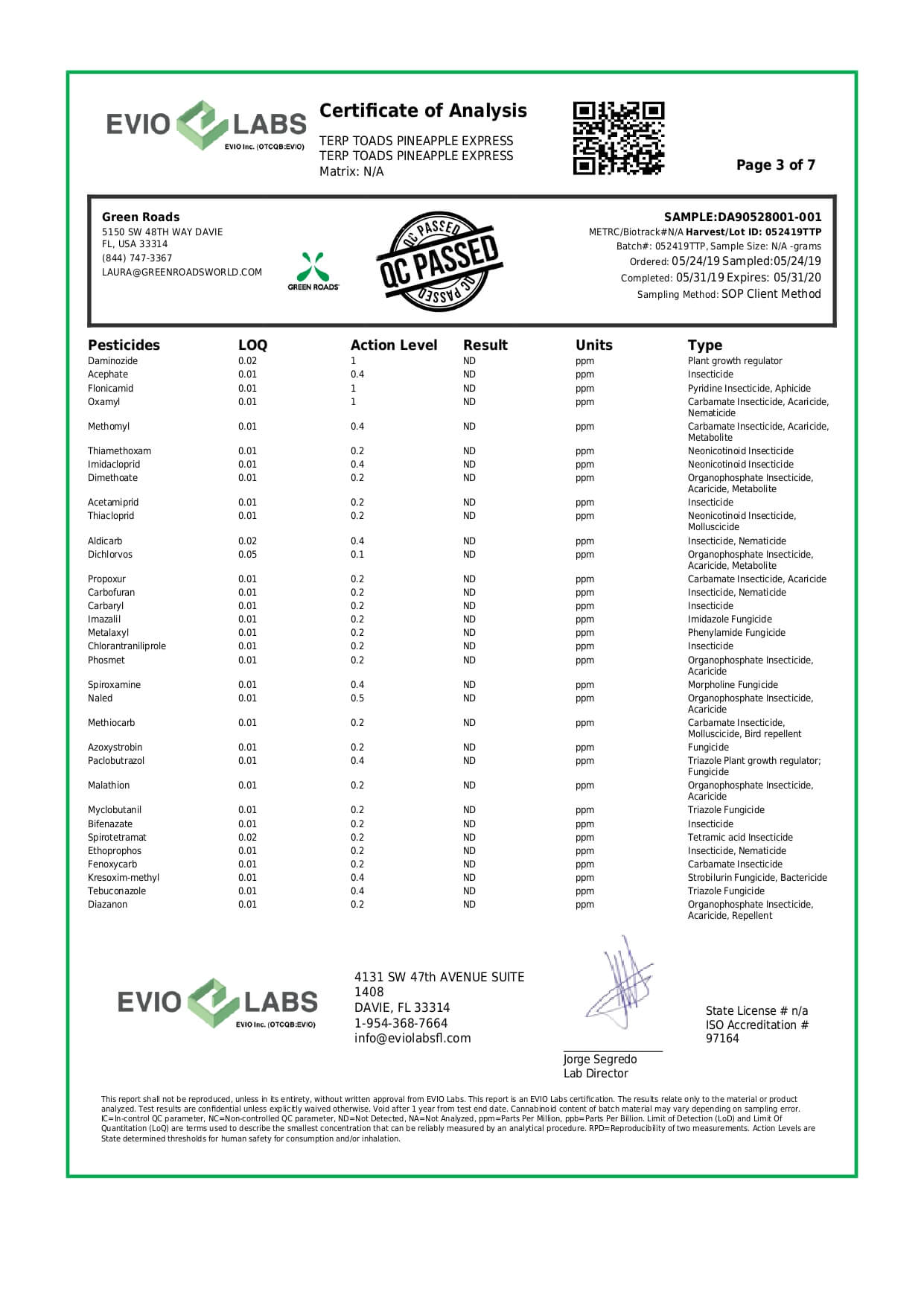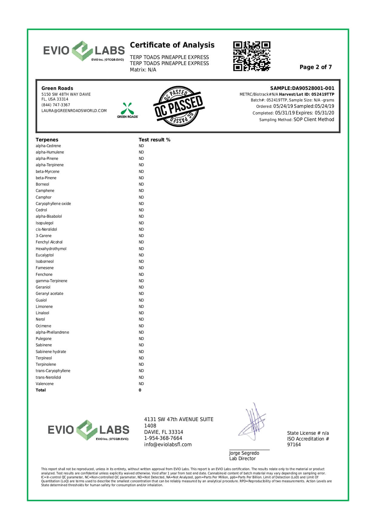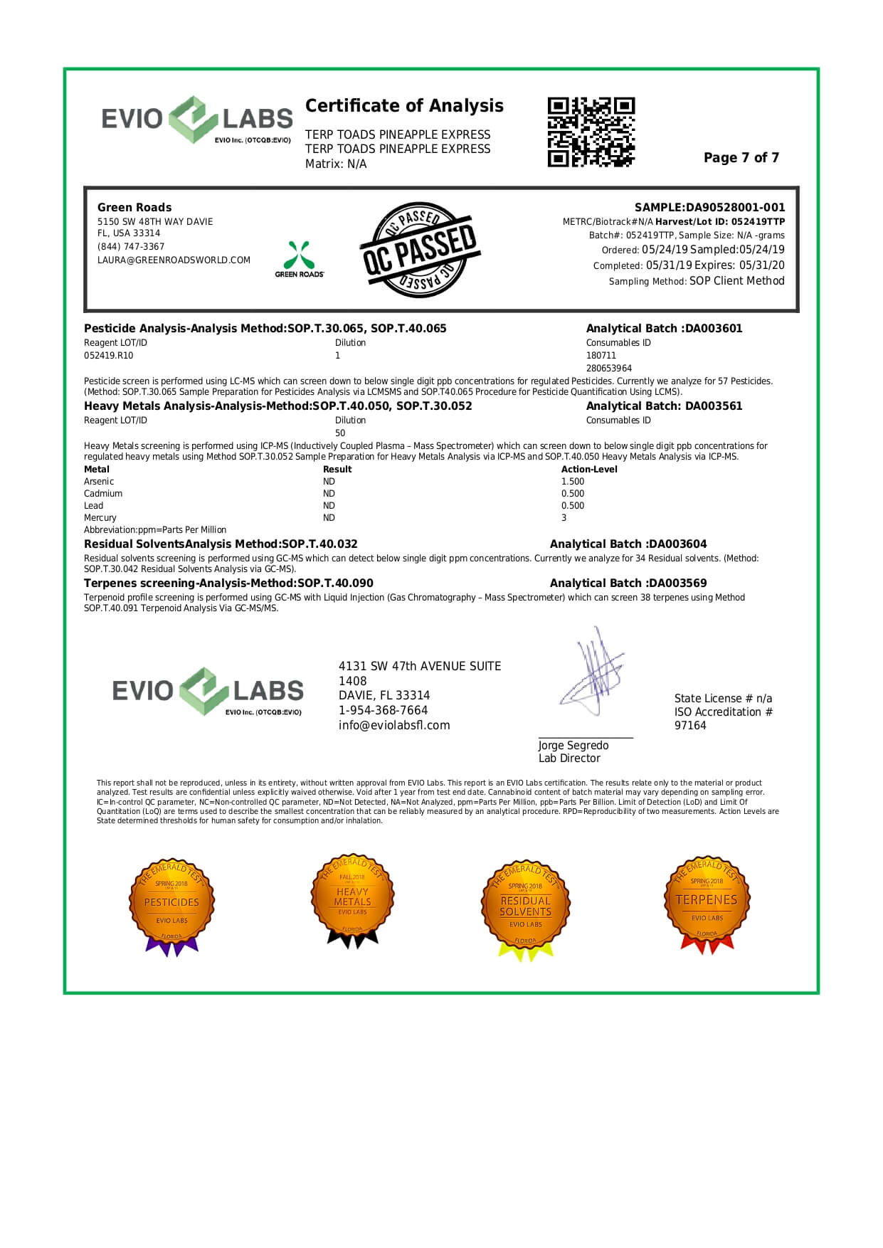 Green Roads CBD Edible Terp Toads OTG Lab Report important details about vaping products.