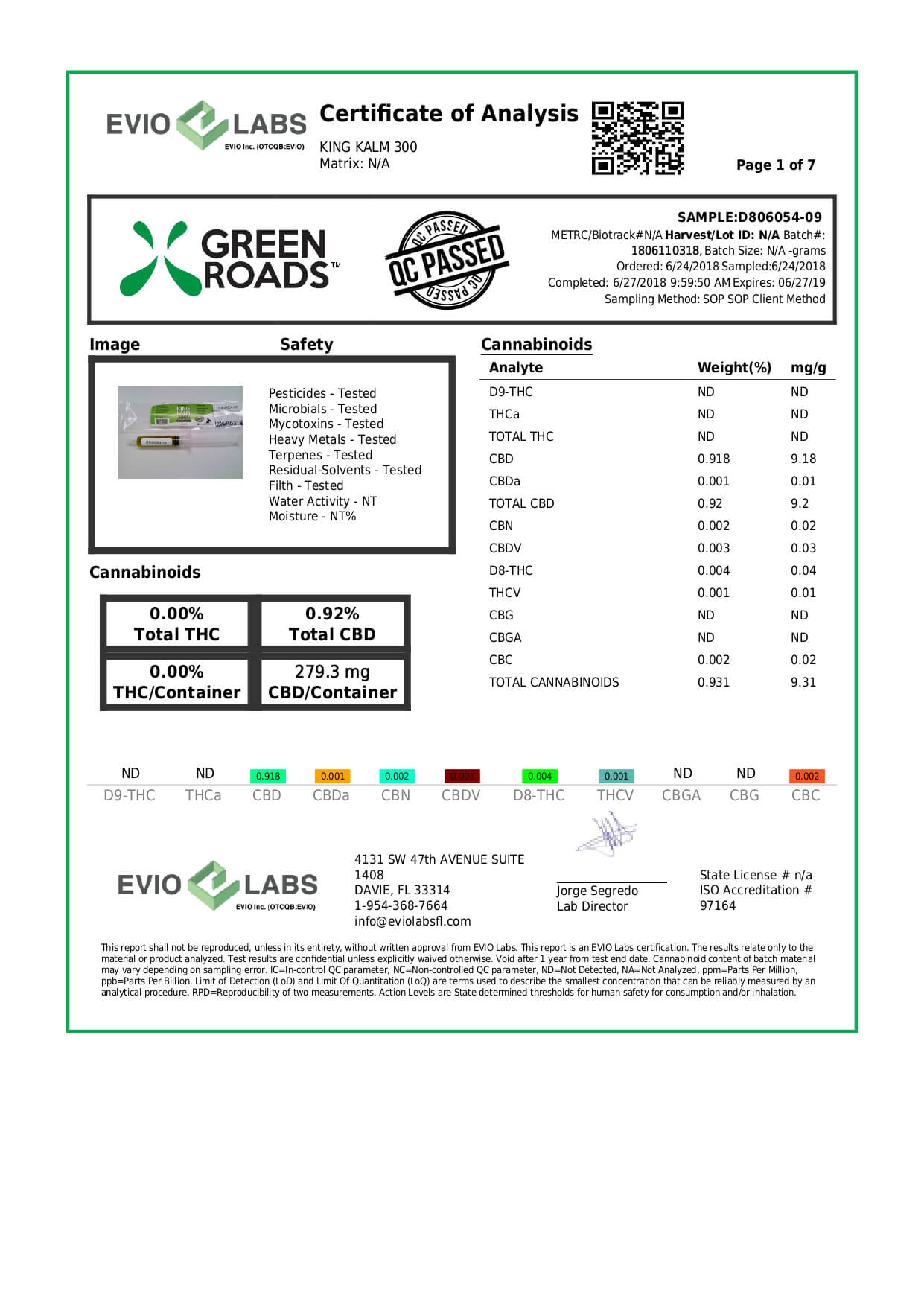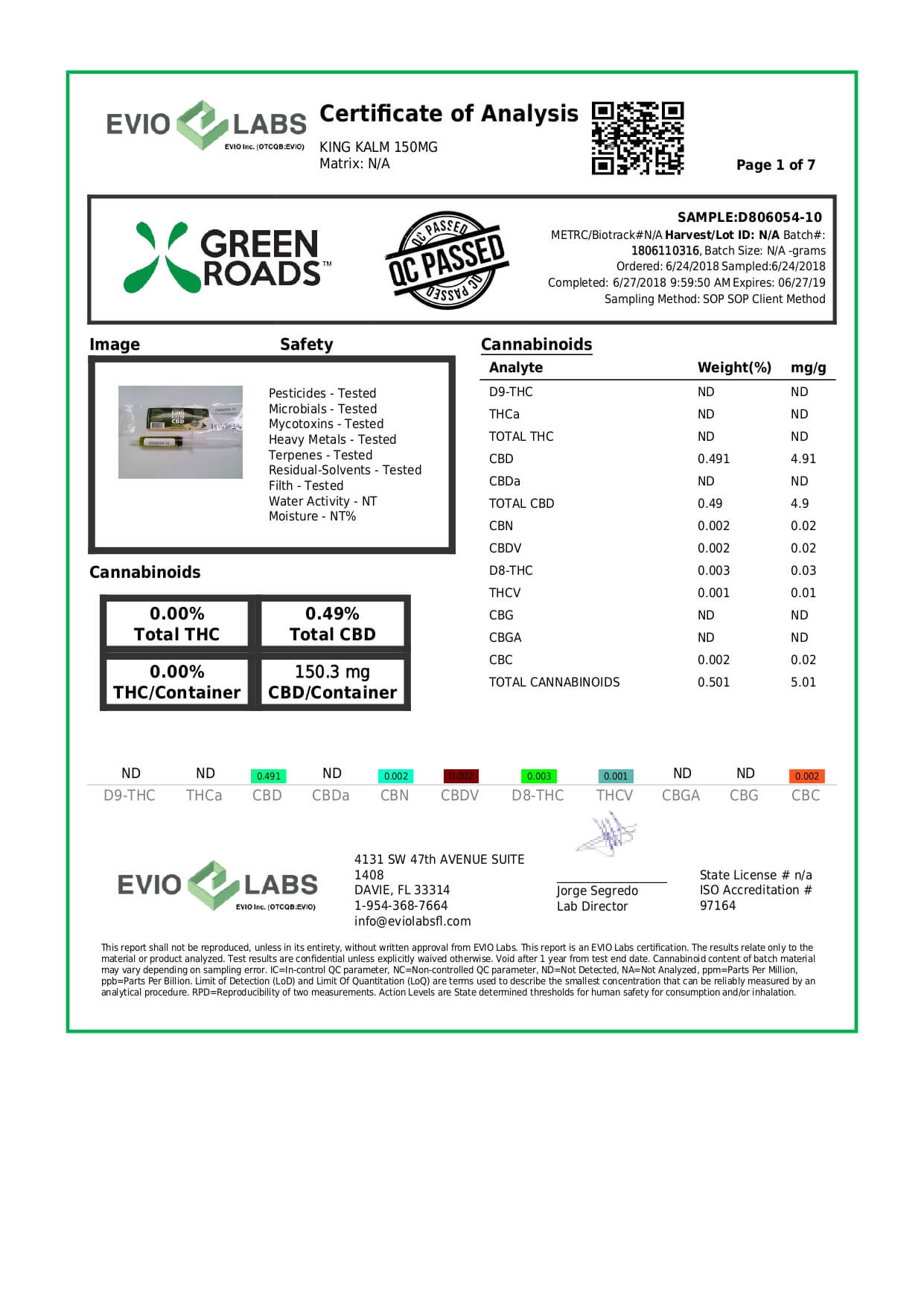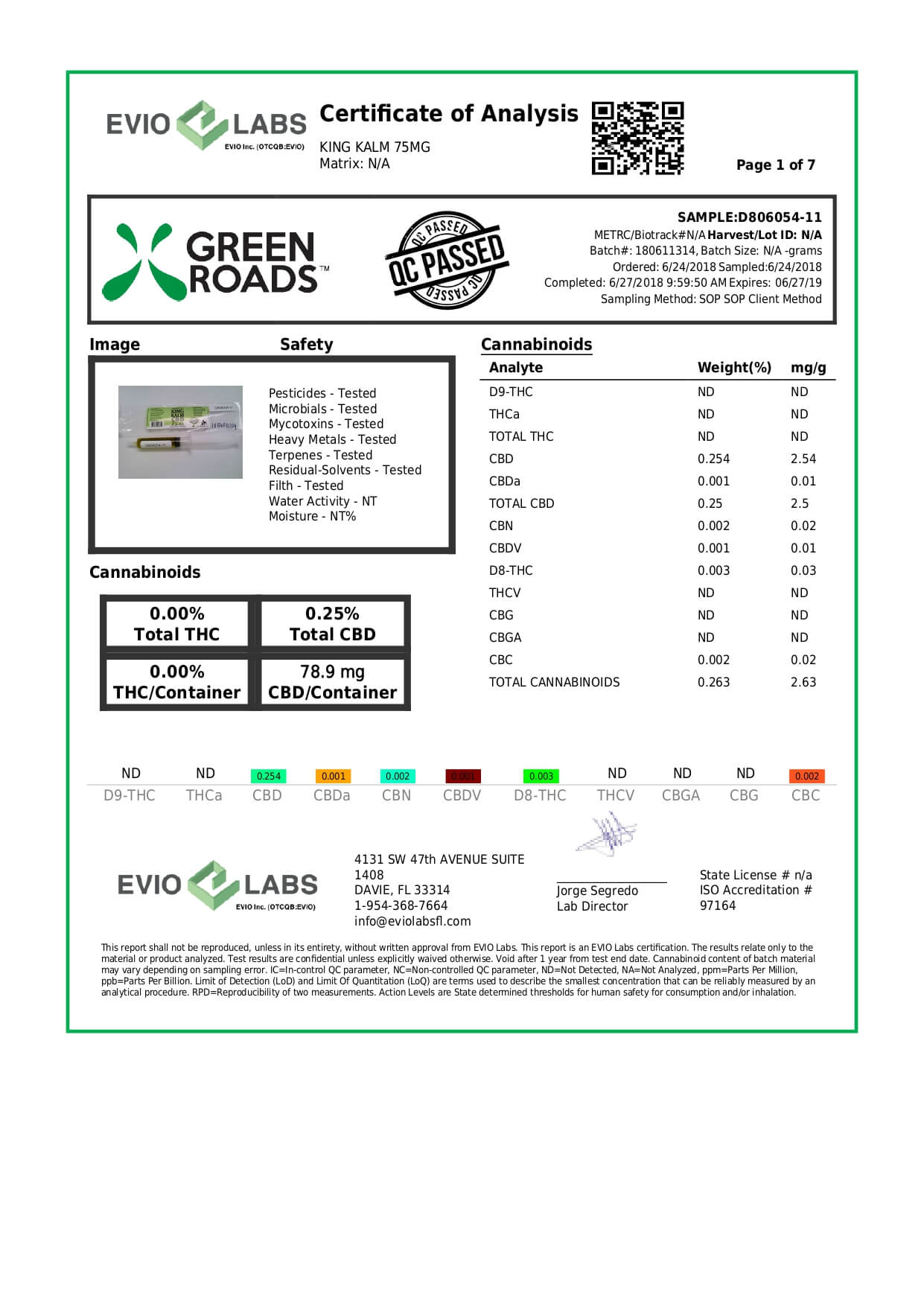 Green Roads CBD Pet Tincture KingKalmCBD Canine Formula Lab Report important details about vaping products.