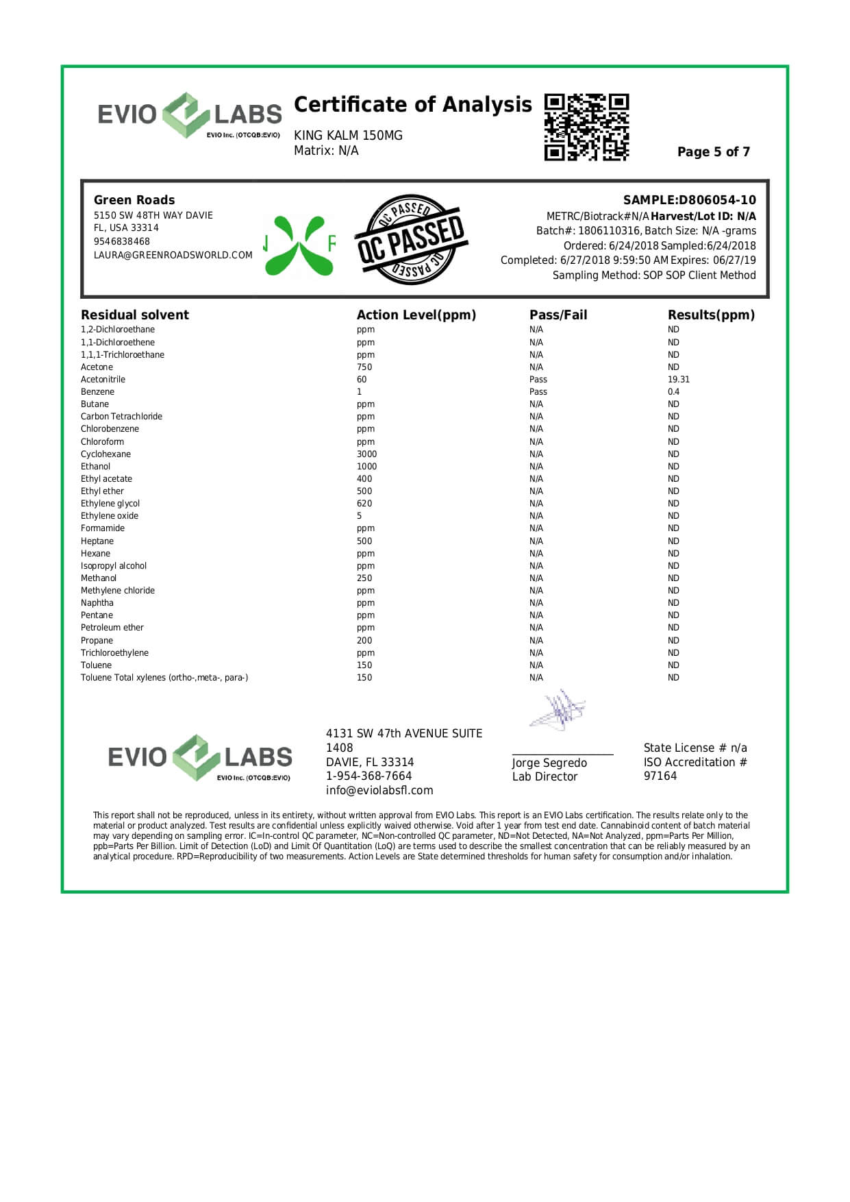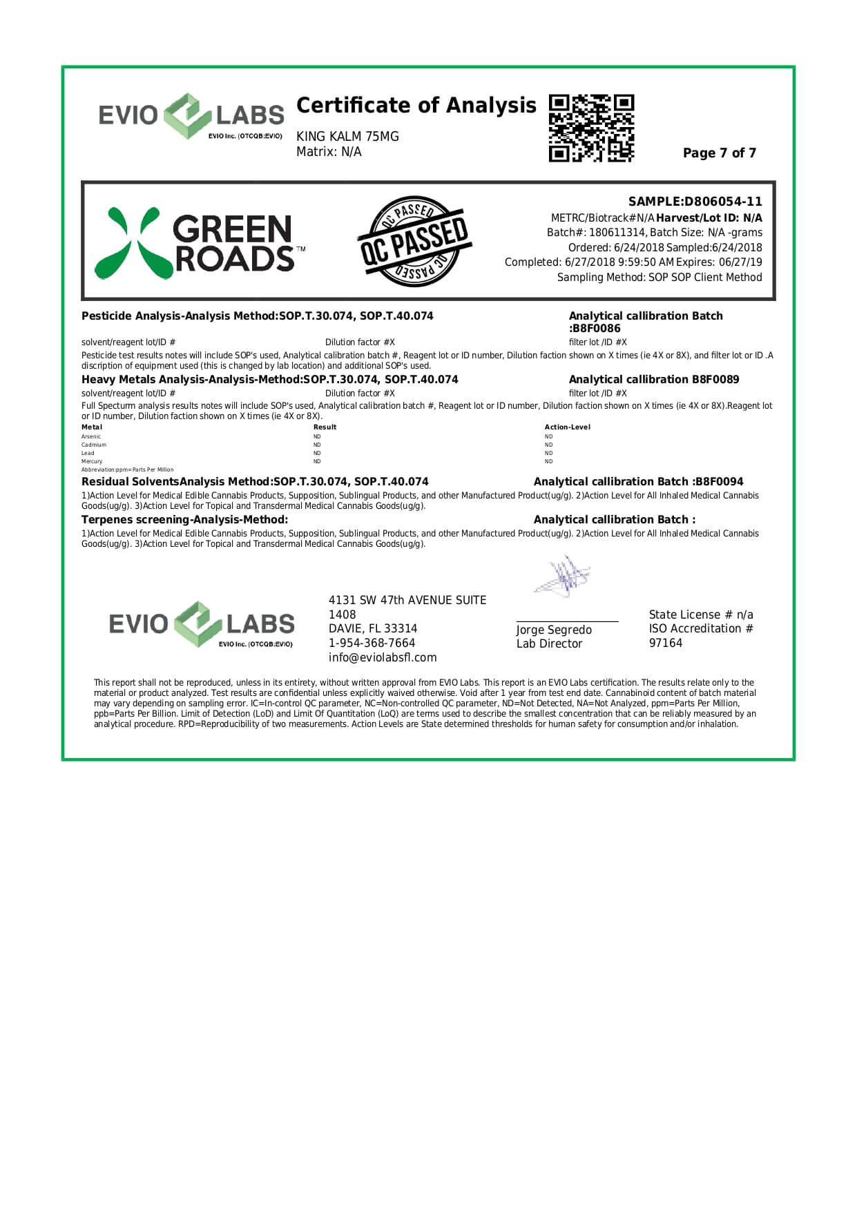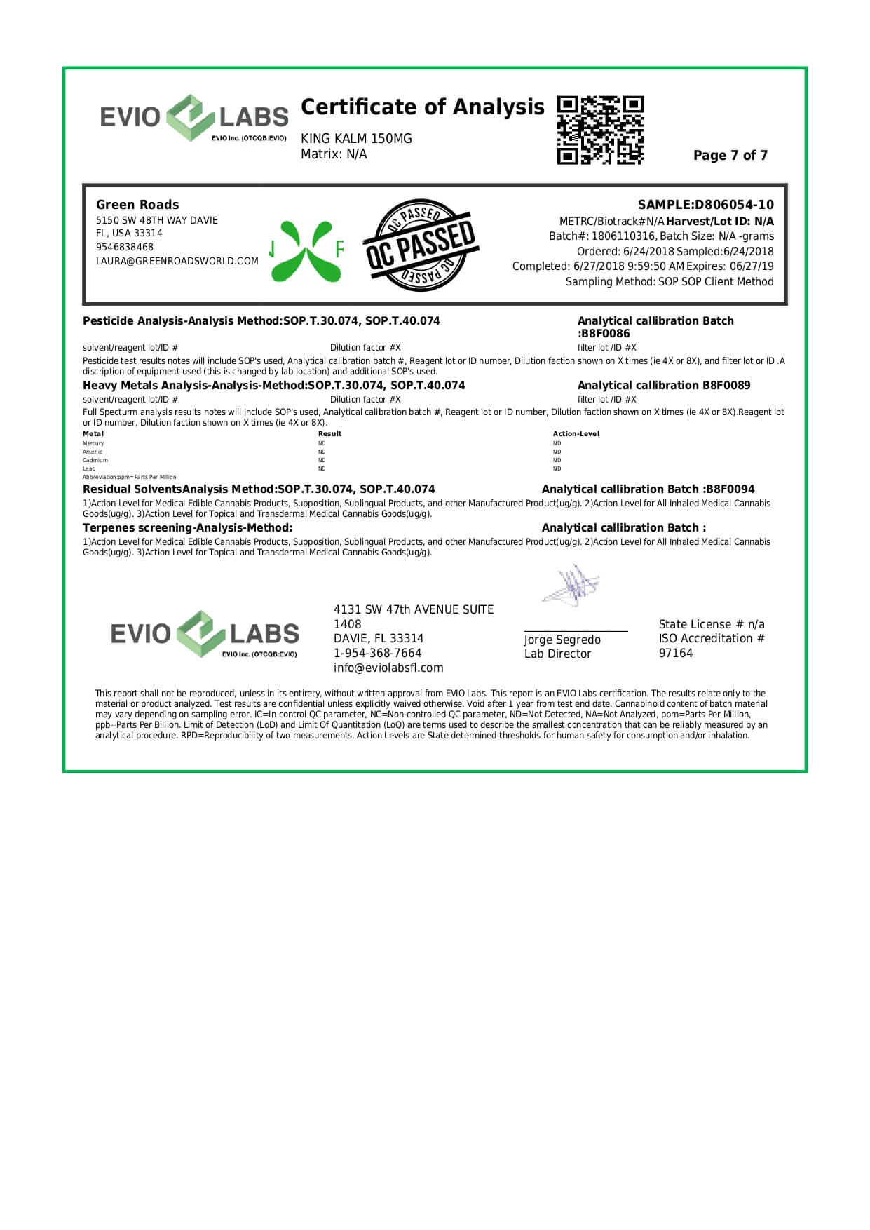 Green Roads CBD Pet Tincture KingKalmCBD Canine Formula Lab Report important details about vaping products.
