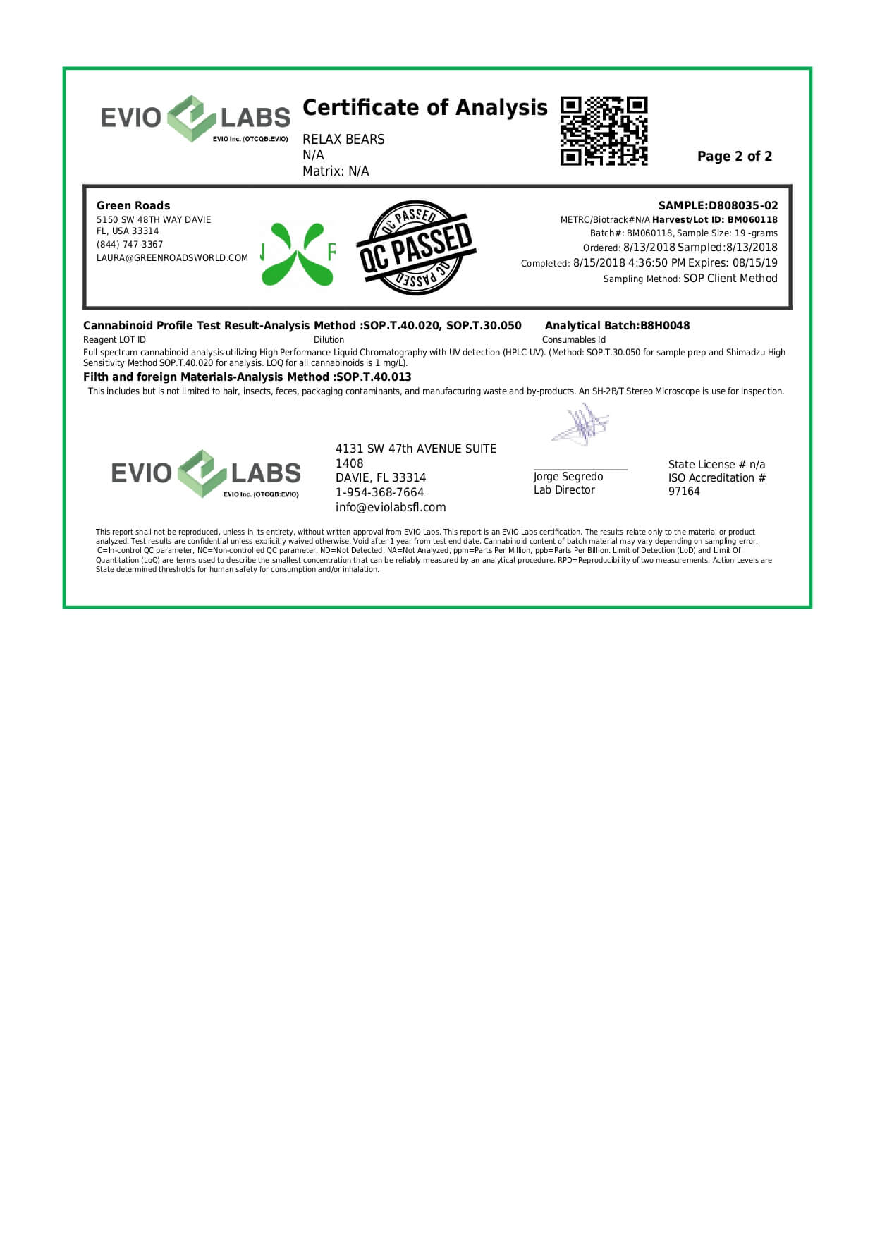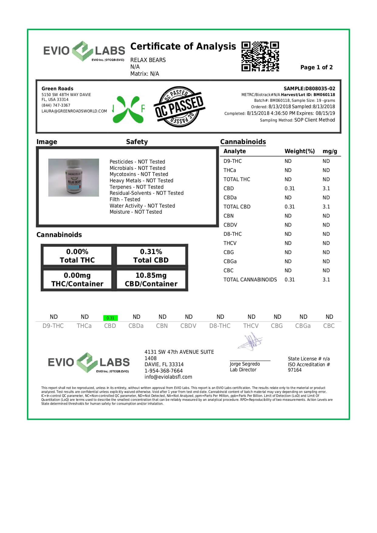 Green Roads CBD Relax Bears Lab Report important details about vaping products.