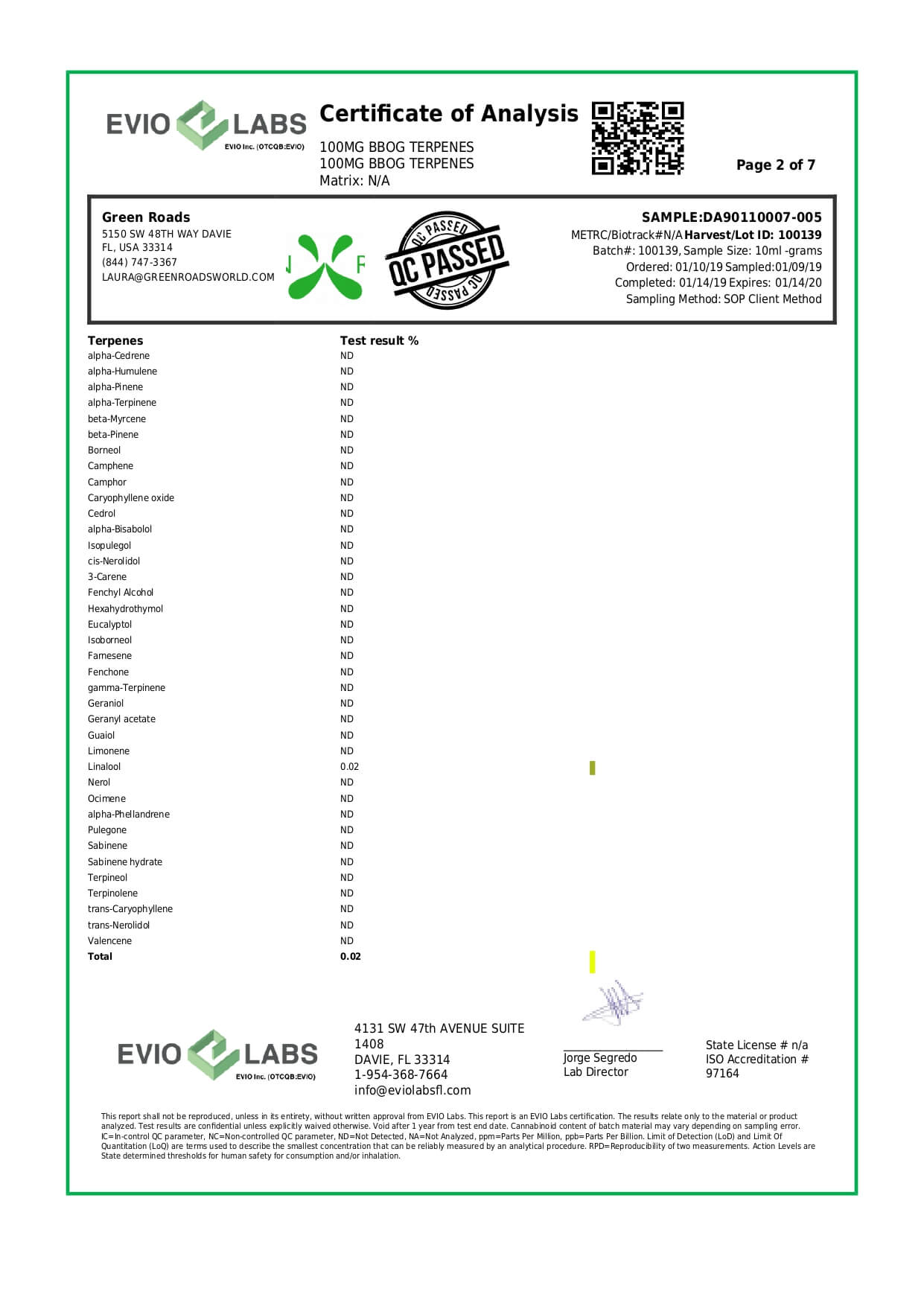 Green Roads CBD Terpenes Oil Blueberry OG Lab Report