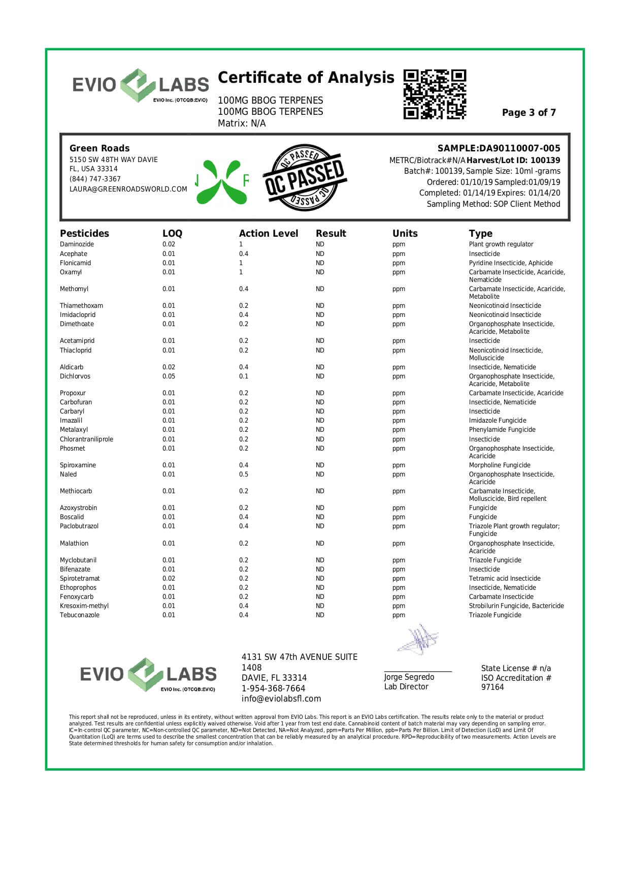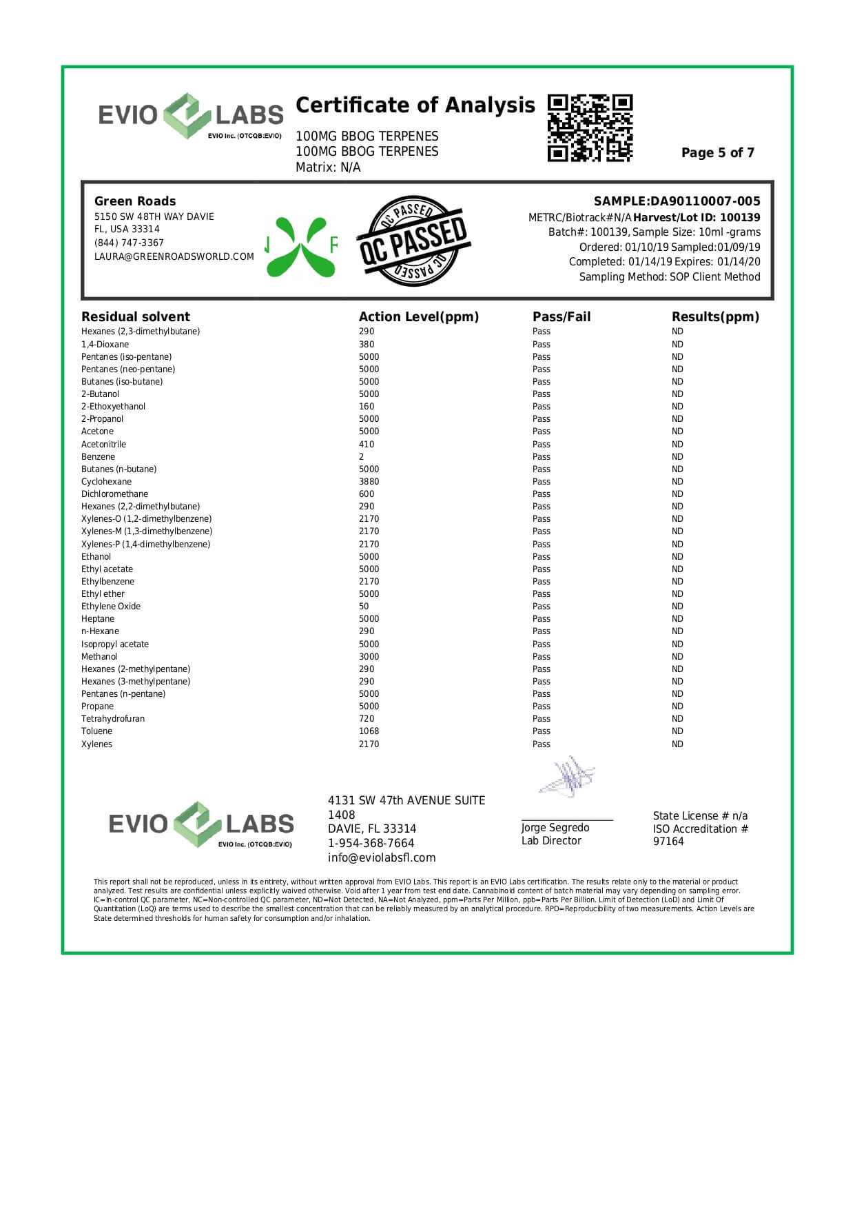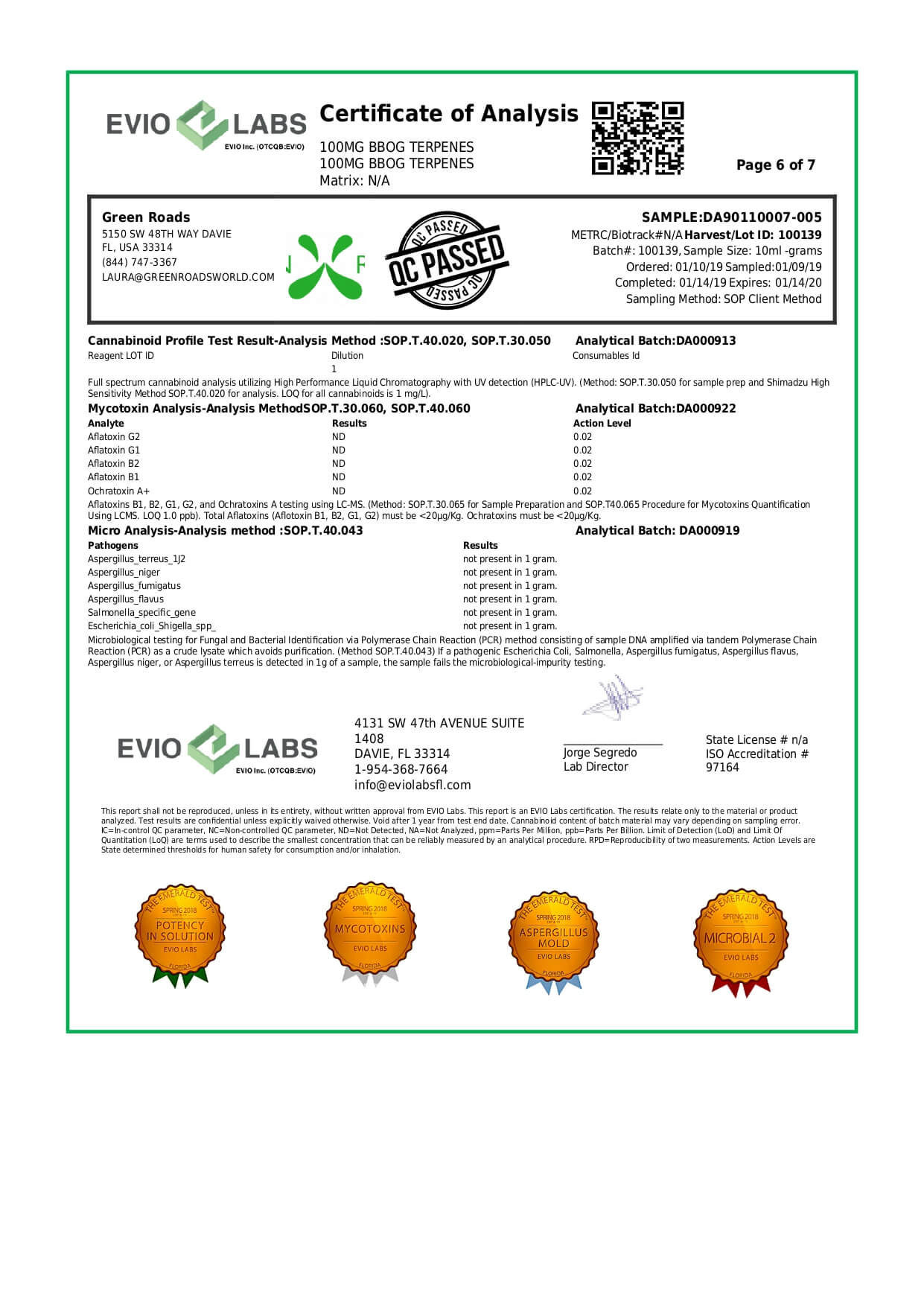 Green Roads CBD Terpenes Oil Blueberry OG Lab Report important details about vaping products.