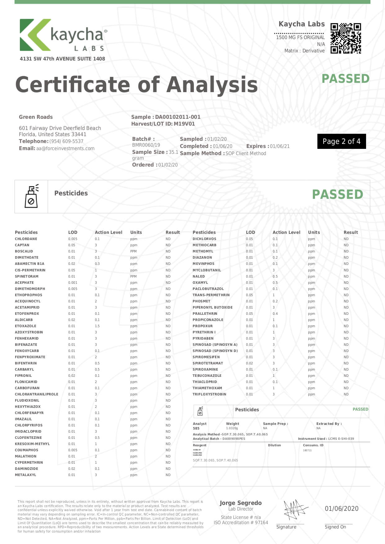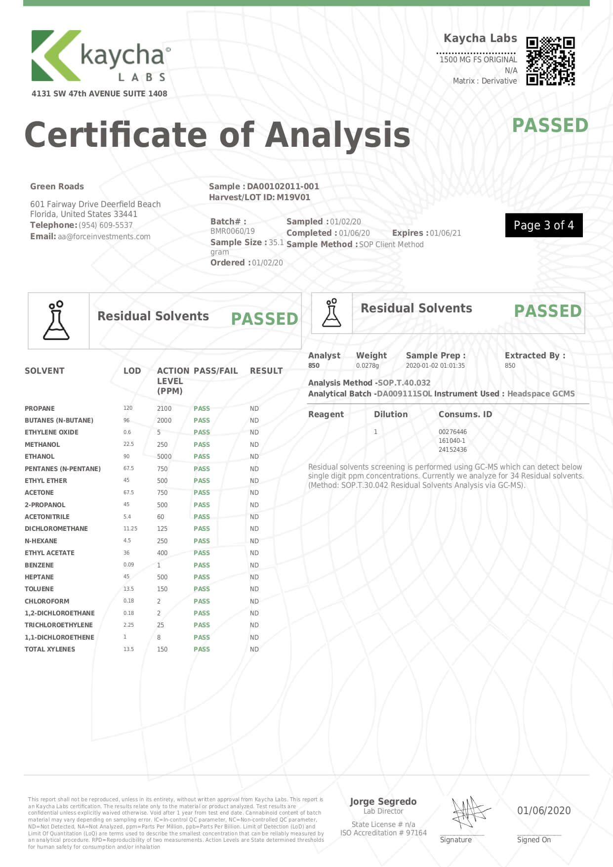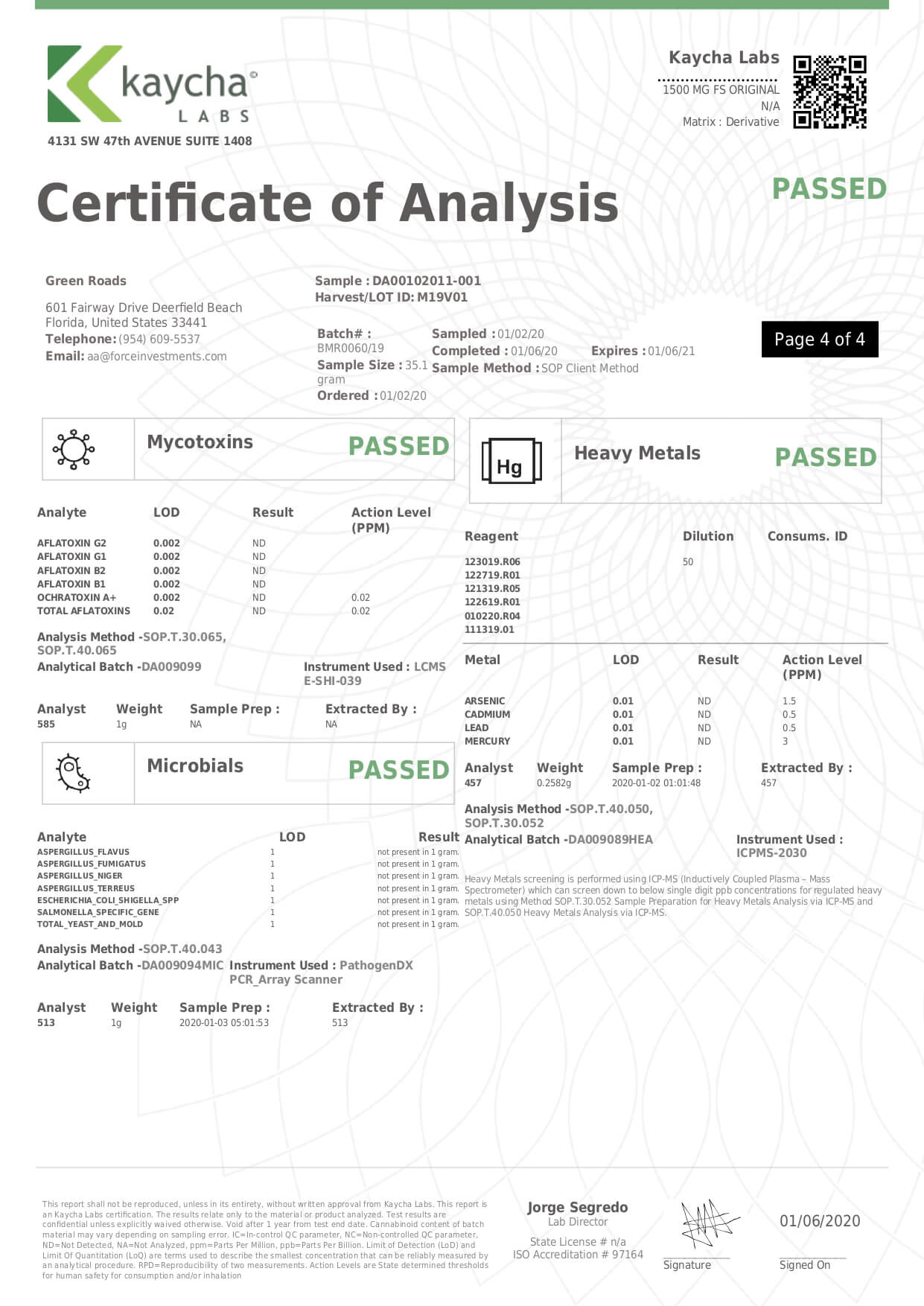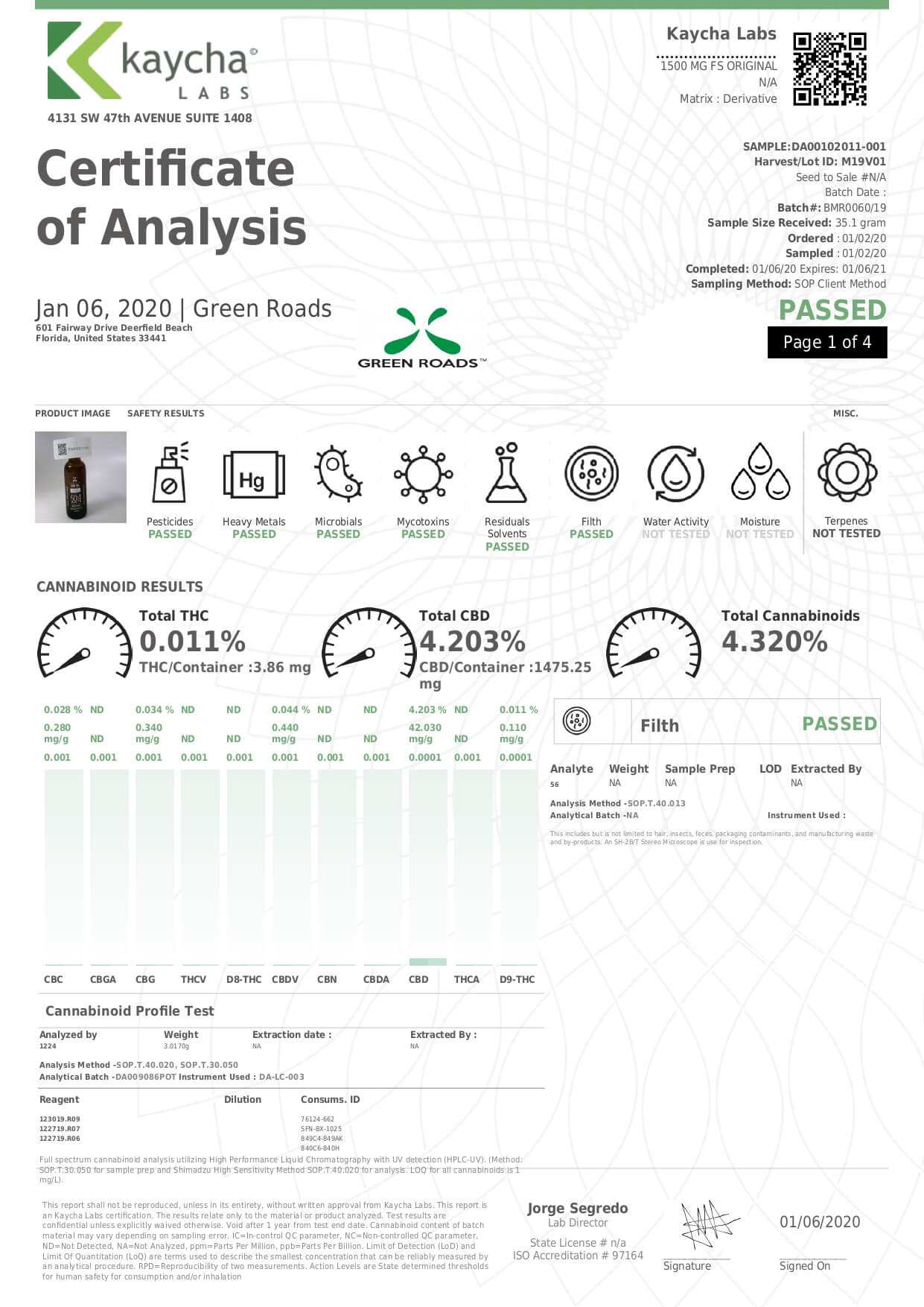 Green Roads CBD Tincture Full Spectrum Mighty Lab Report