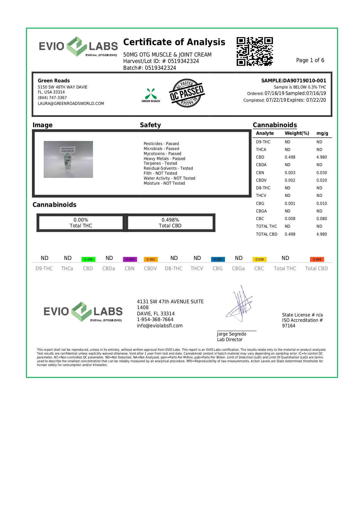 Green Roads CBD Topical Pain Cream on the Go Lab Report important details about vaping products.