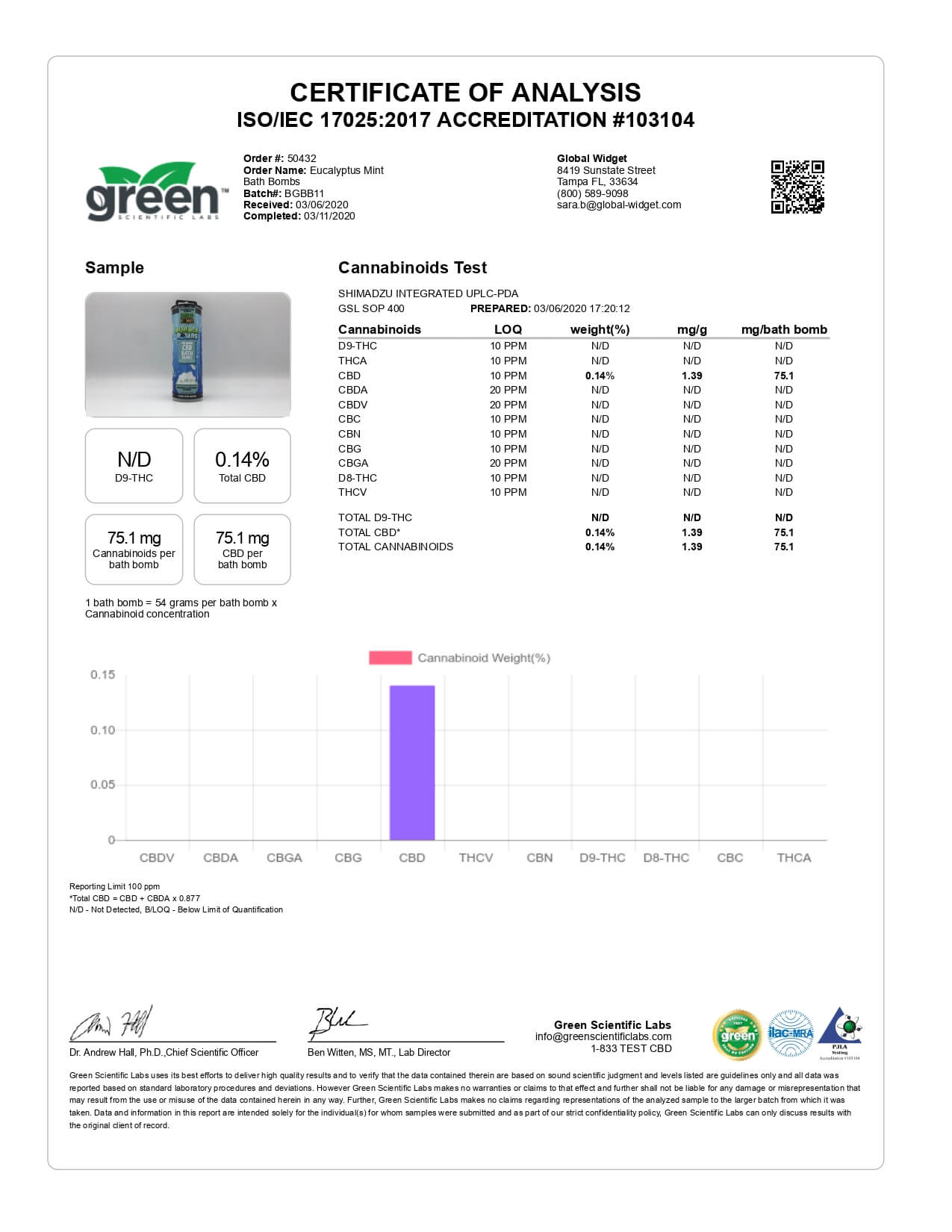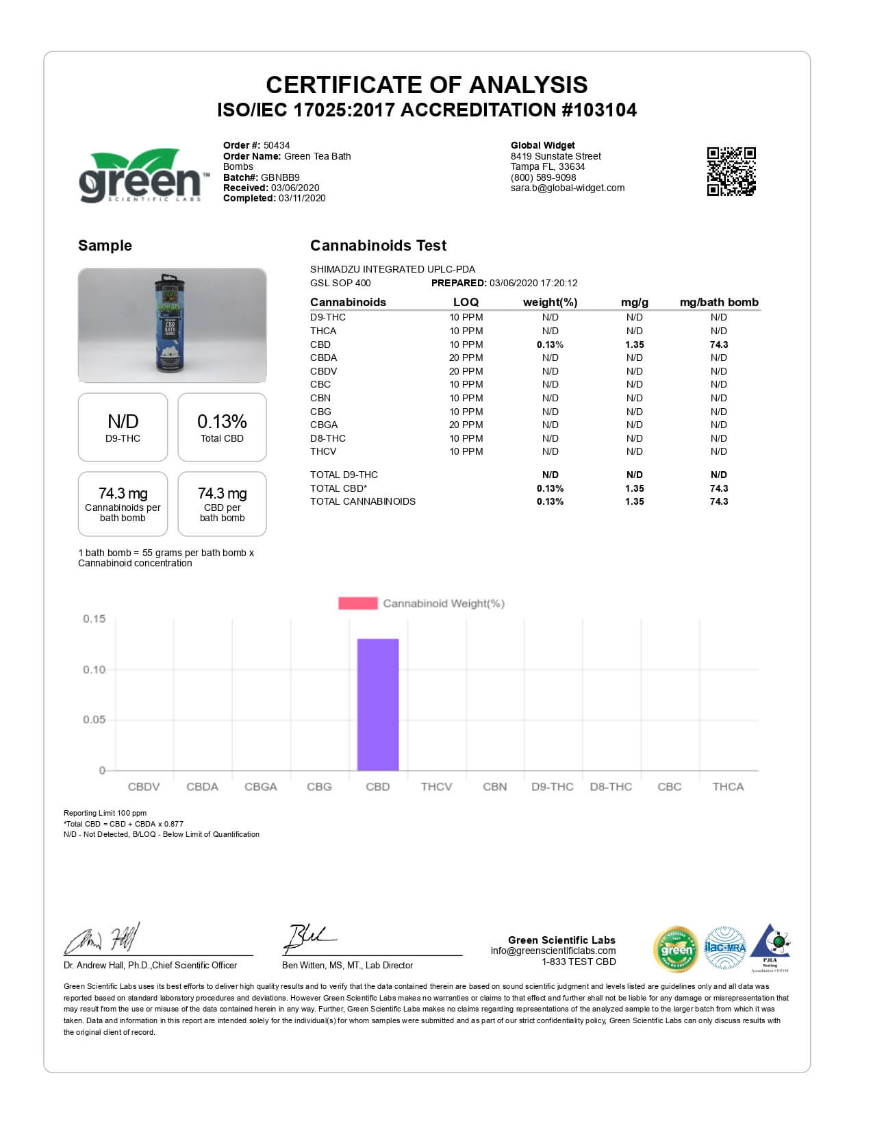Hemp Bombs CBD Bath Signature Bath Bomb Lab Report