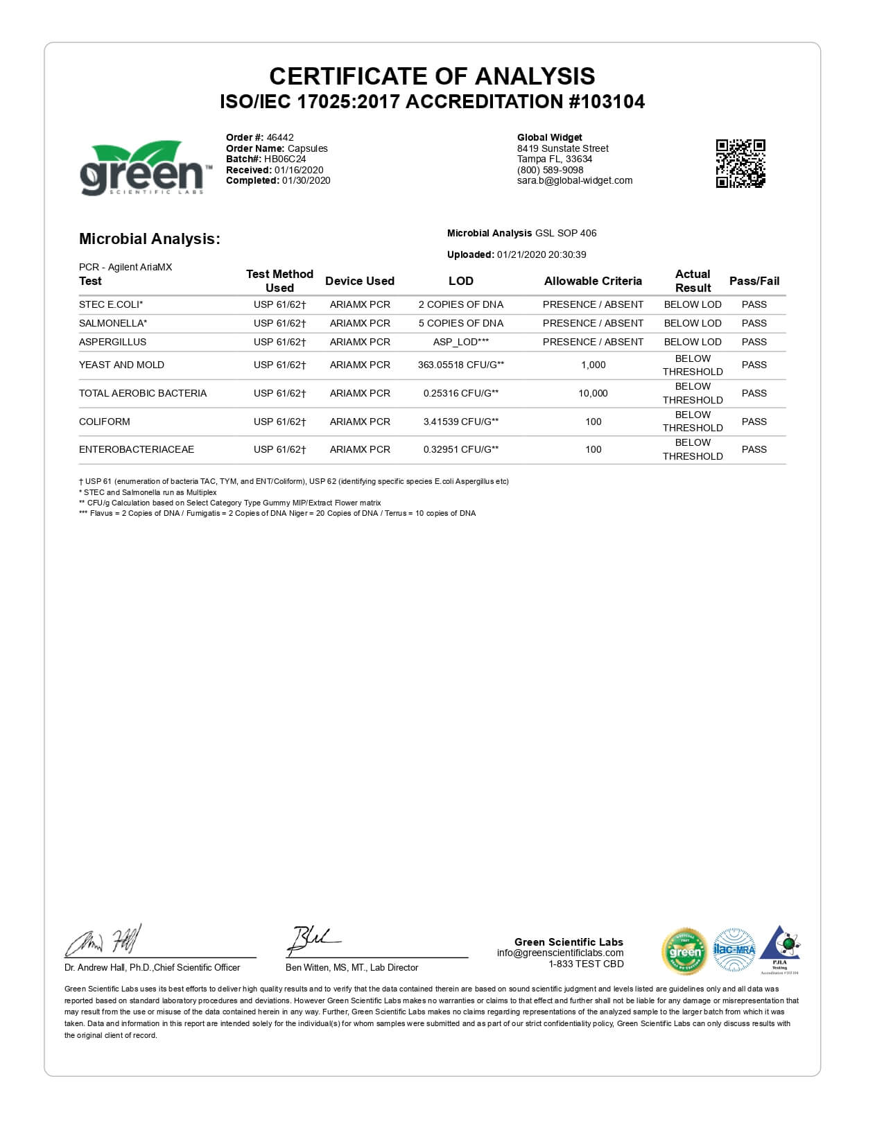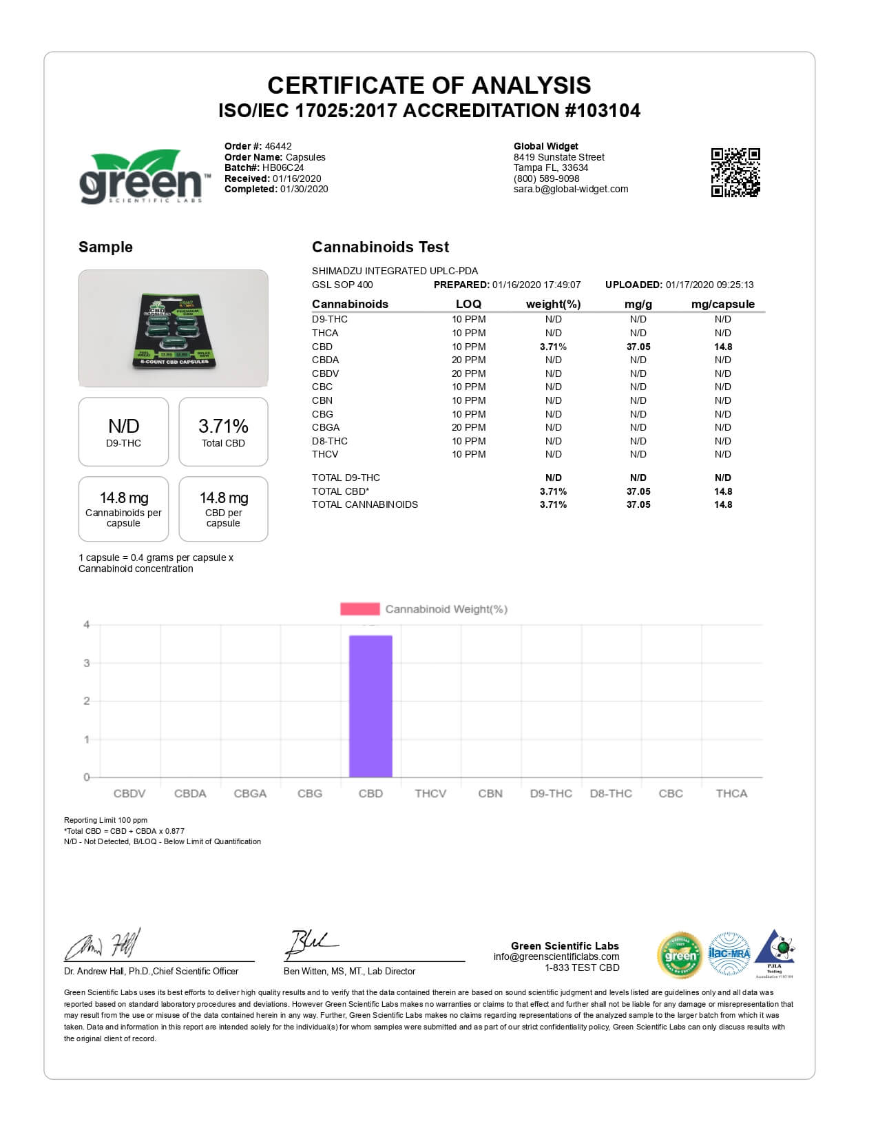Hemp Bombs CBD Capsules Original Lab Report